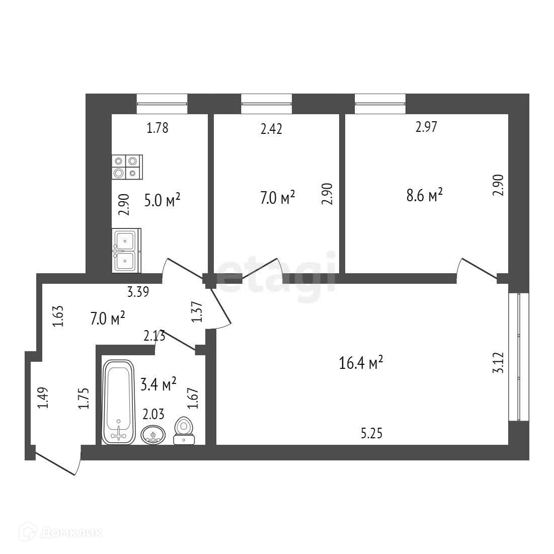 Общая площадь 47.4 м2