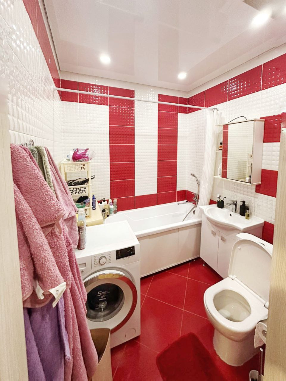 Квартира площадью 40 кв. м., СУ- совмещенный с ванной комнатой , где выложен современный керамогранит.