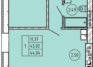 Общая площадь: 44.02 м2