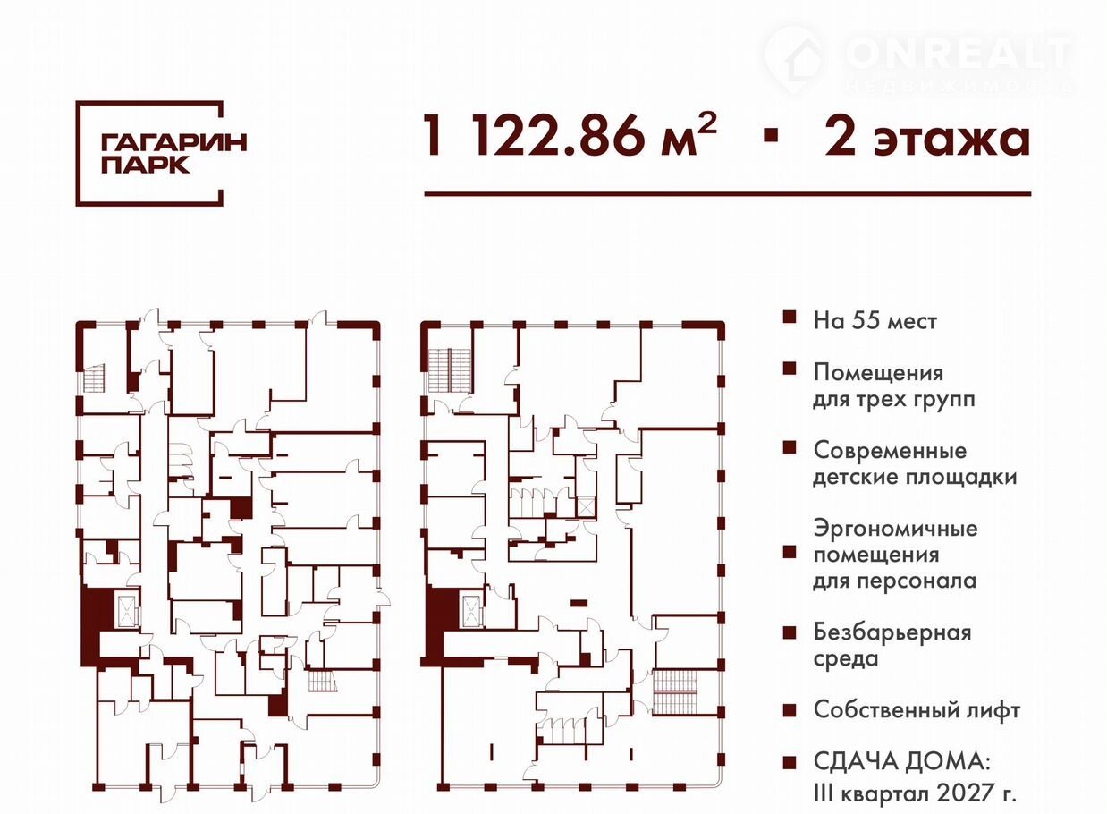 — 2 этажа, помещения под 3 группы / 55 мест