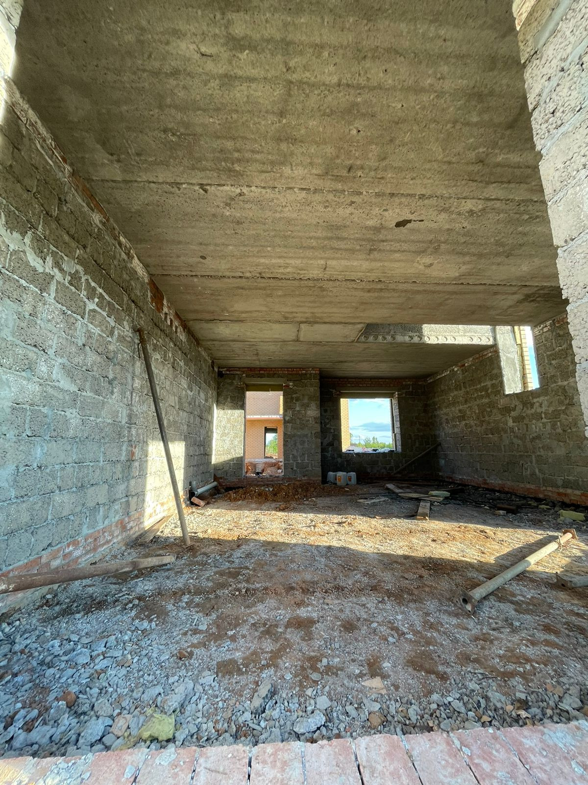 Отделка: Предчистовая. Отштукатурены стены цементной штукатуркой. Стяжка пола. Разведена электрика. Индивидуальное отопление, газовый котел, теплый пол на первом этаже, установлены радиаторы на 1 и 2м этаже.