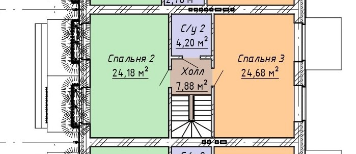 2 этаж: Жилая комната 24,2 кв.м., санузел 4,02 кв.м., жилая комната 24,66 кв.м.
