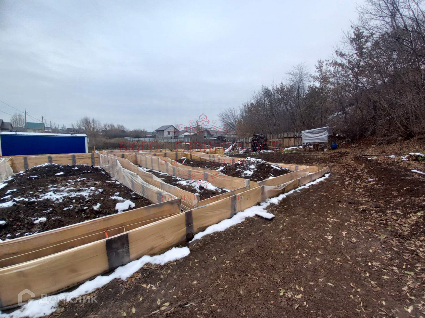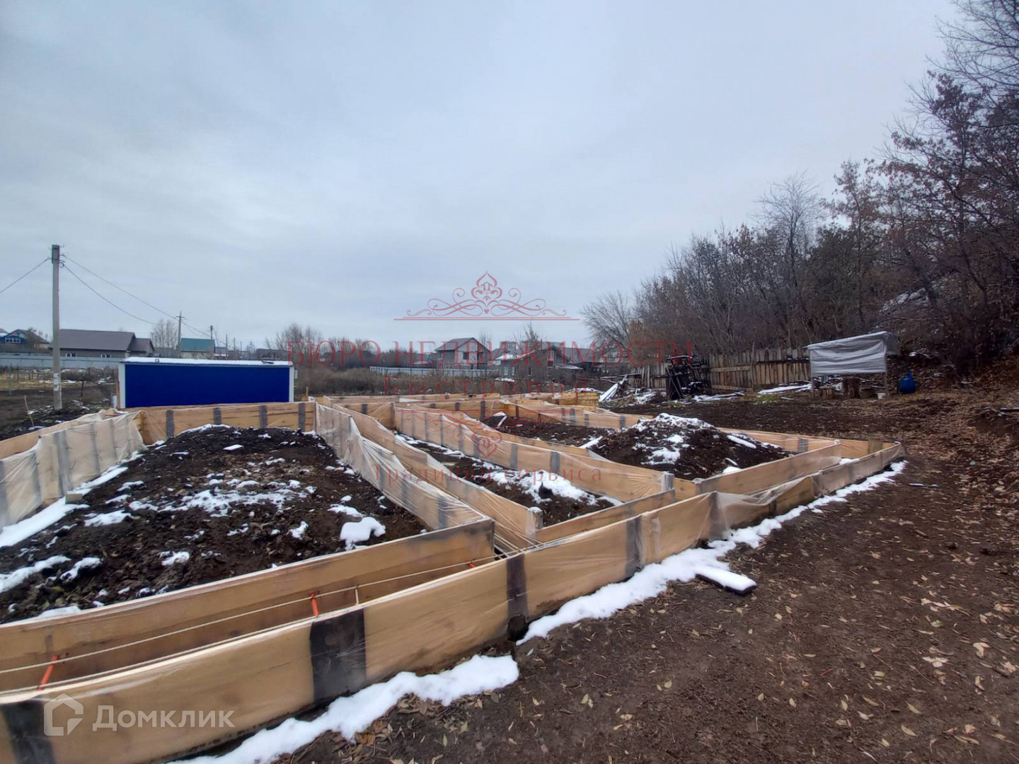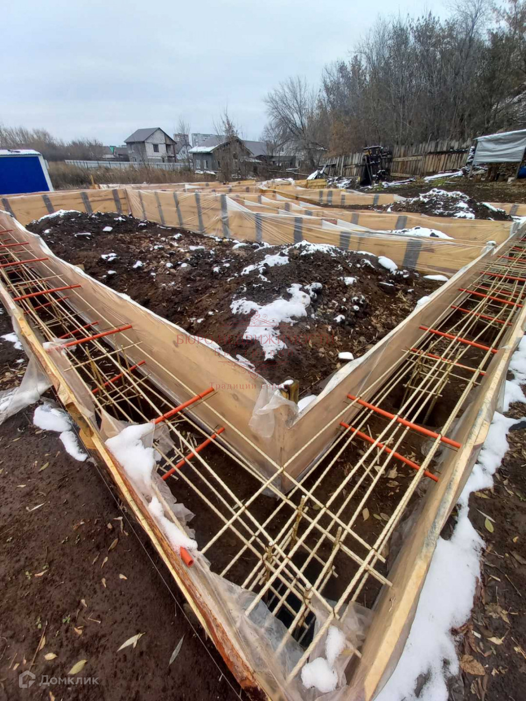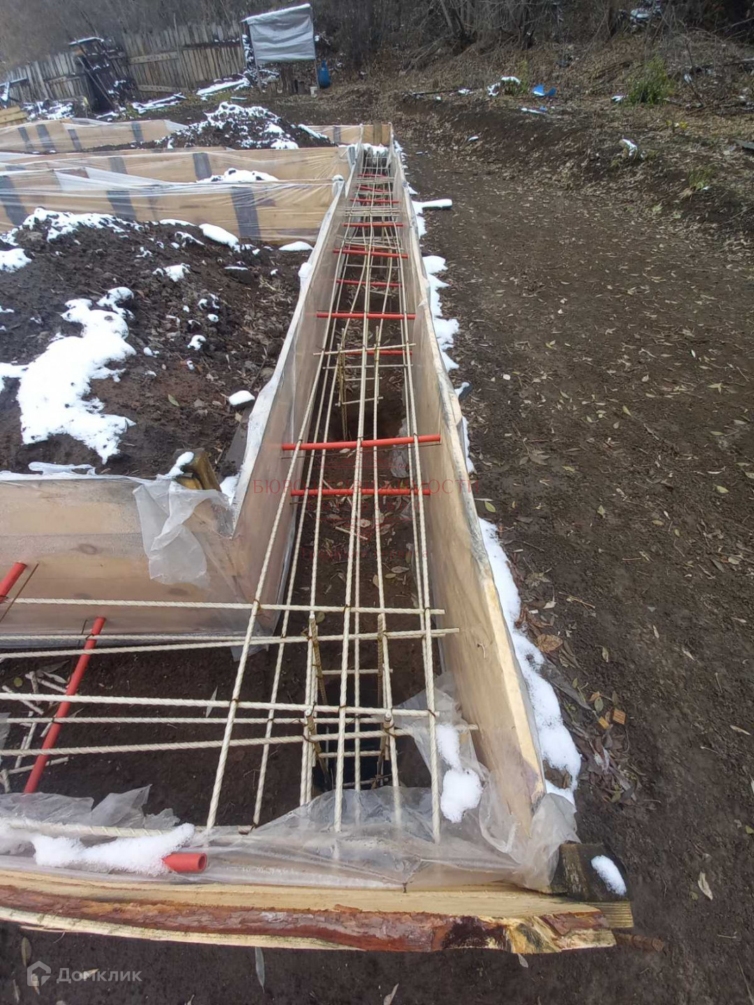 На участке подготовлена опалубка под заливку фундамента, собственная водяная скважина. Газ по границы участка.