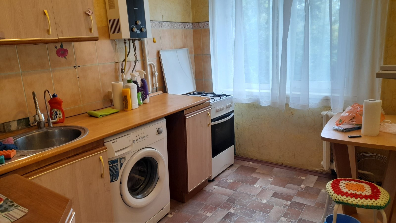 Сдаём квартиру хорошей порядочной семье на длительный срок. Есть большая кровать, две тумбочки и  шкаф в спальне. В зале диван, маленький телевизор, кондиционер. В кухне кухонный гарнитур, стол, стиральная машинка, холодильник. С/у совмещённый, но за счёт этого площадь кухни увеличена. Есть застекленный балкон, там имеются  шкафчики и полки для хранения. В шаговой доступности школы, сады, поликлиники, напротив ТК Гулливер, спортивный комплекс Оренбург. Соседи очень дружные. Во дворе парковка.