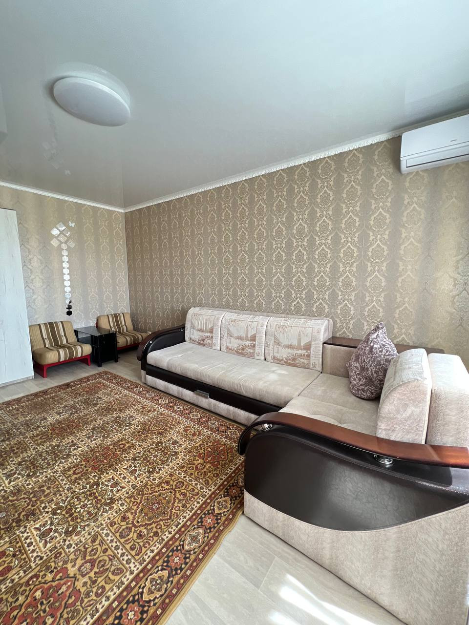 Для комфортного проживания в квартире имеется вся необходимая мебель и техника: холодильник, стиральная машинка, диван, обеденный стол, кресла, журнальный столик, электроплита, микроволновка, телевизор, шкаф для одежды, кондиционер.