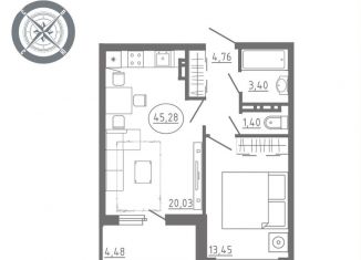 1-комнатная квартира на продажу, 46.7 м2