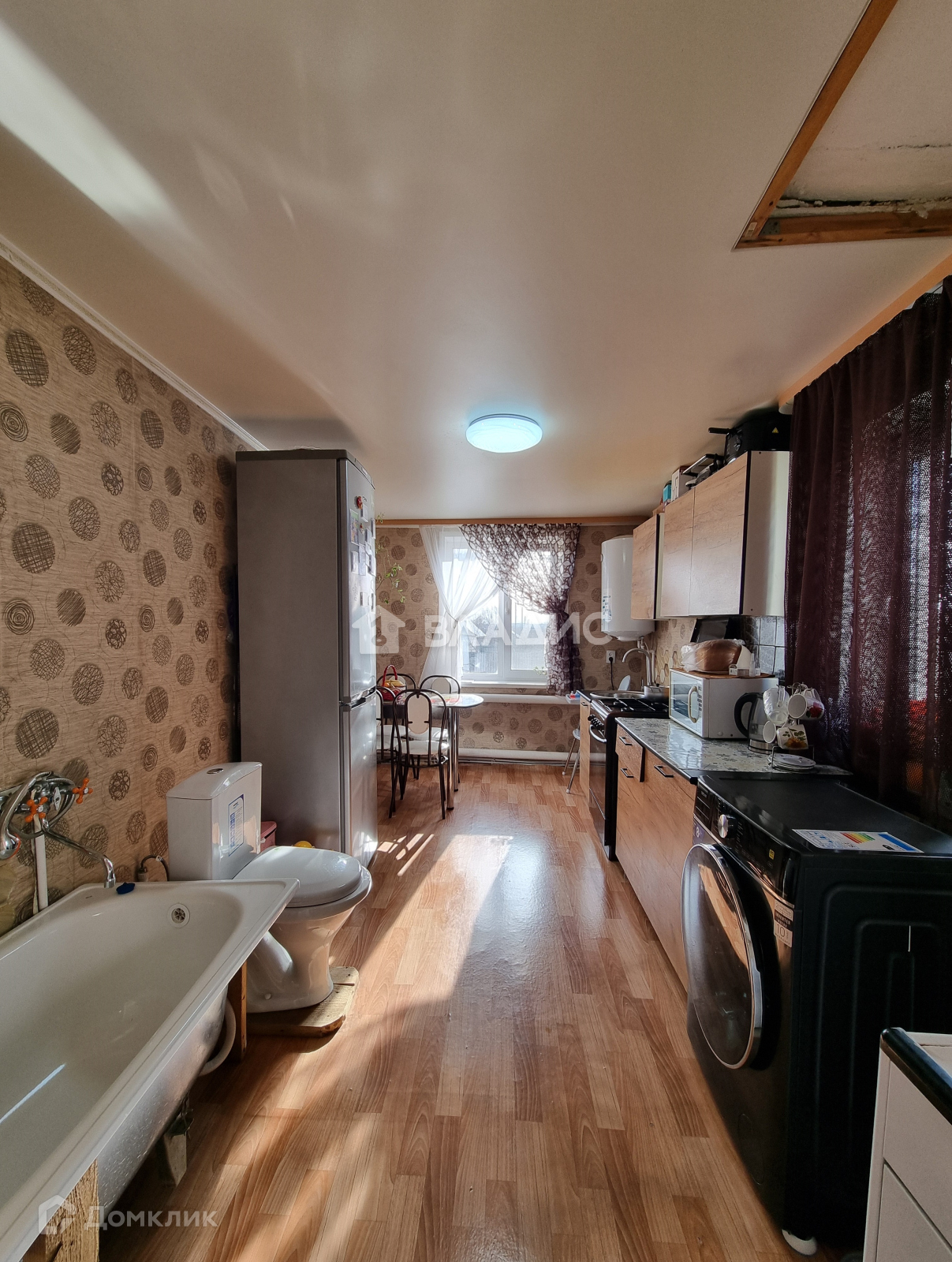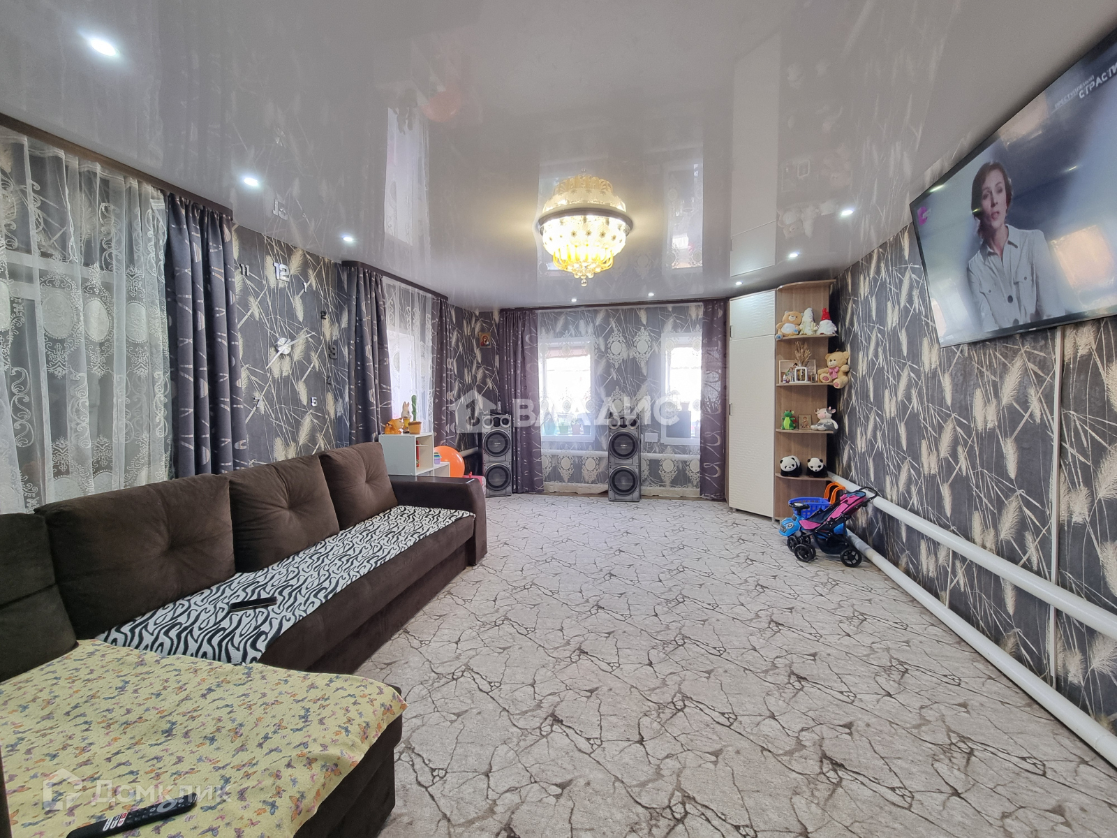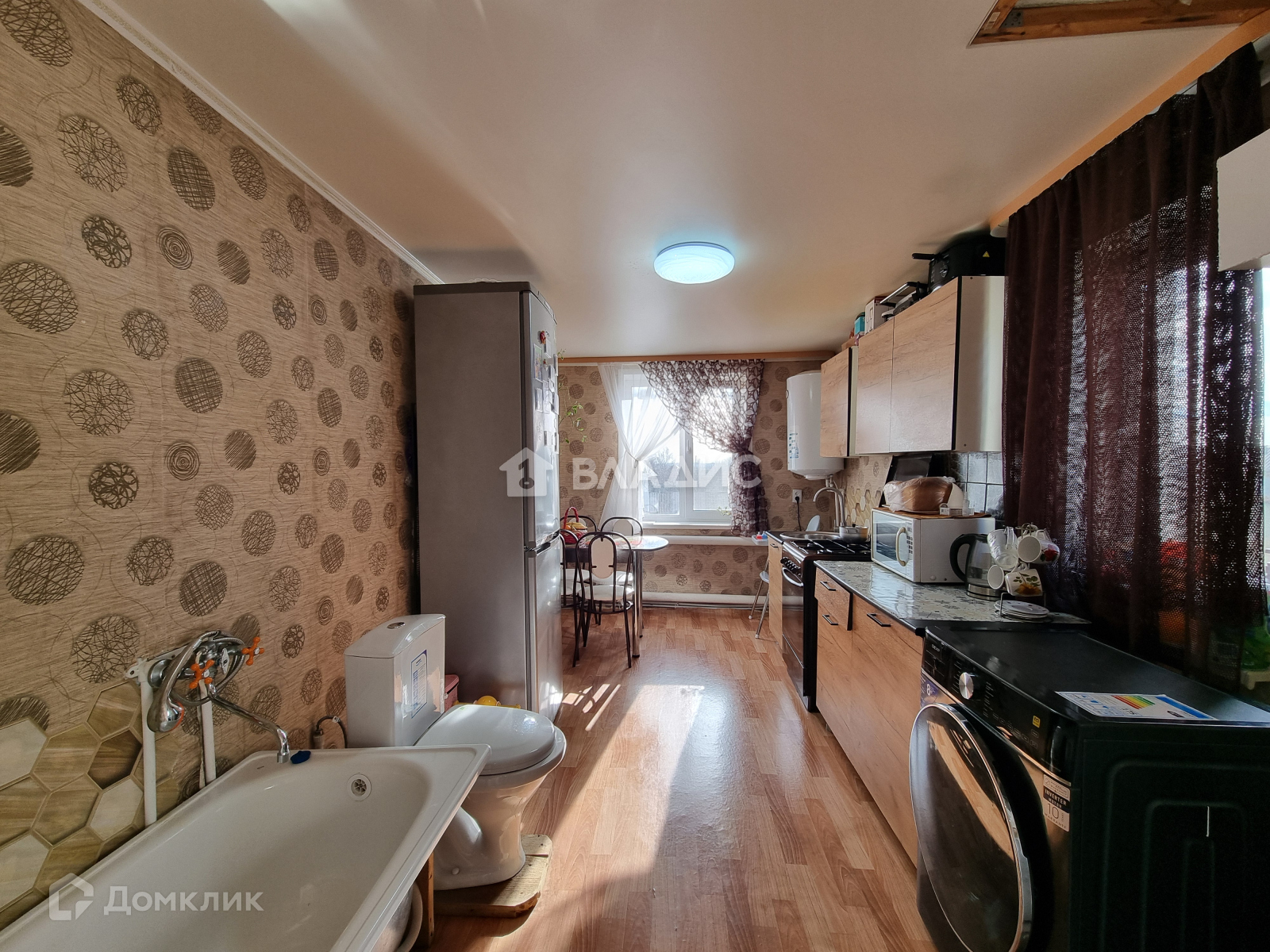 Выполнен ремонт: установлены пластиковые окна, натяжной потолок, на полу линолеум и ковровое покрытие. Водоснабжение от скважины, канализация своя - выгребная яма, отопление от газового котла. Дом светлый и теплый, вложений не требует, можно зайти и жить.