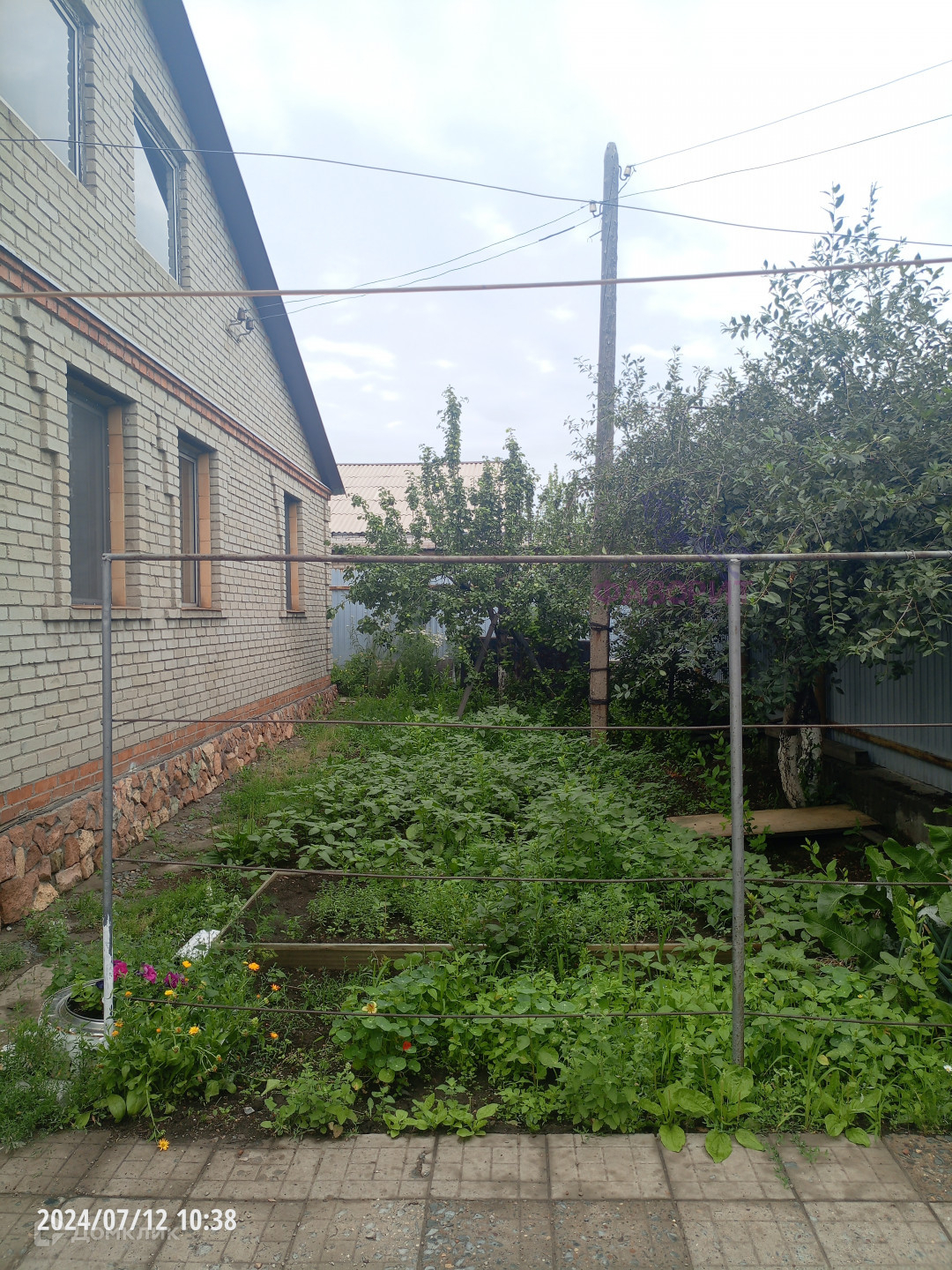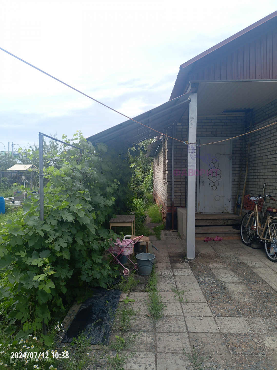 - На участке разнообразные насаждения: виноград, абрикос, яблоня, малина, вишня