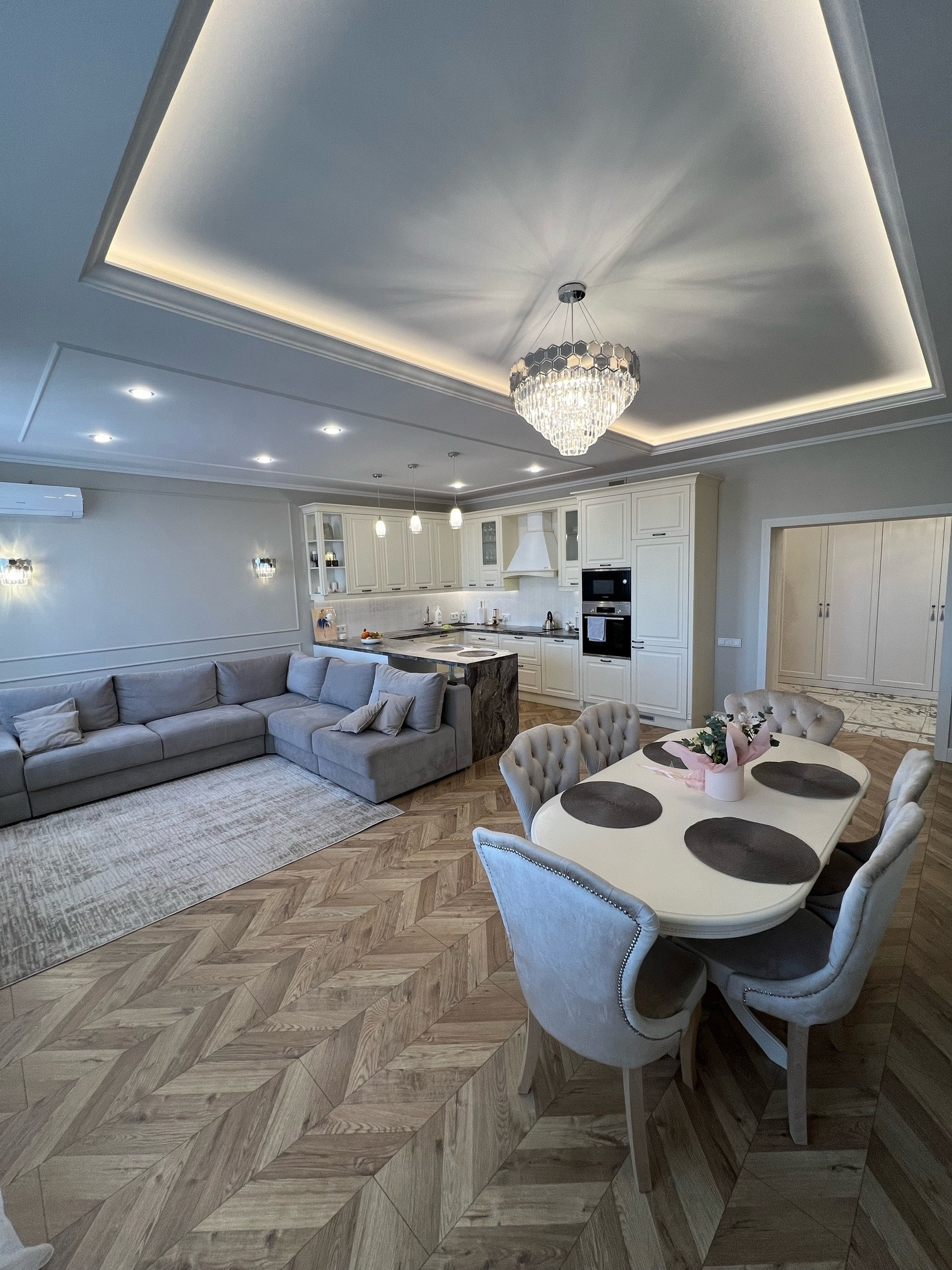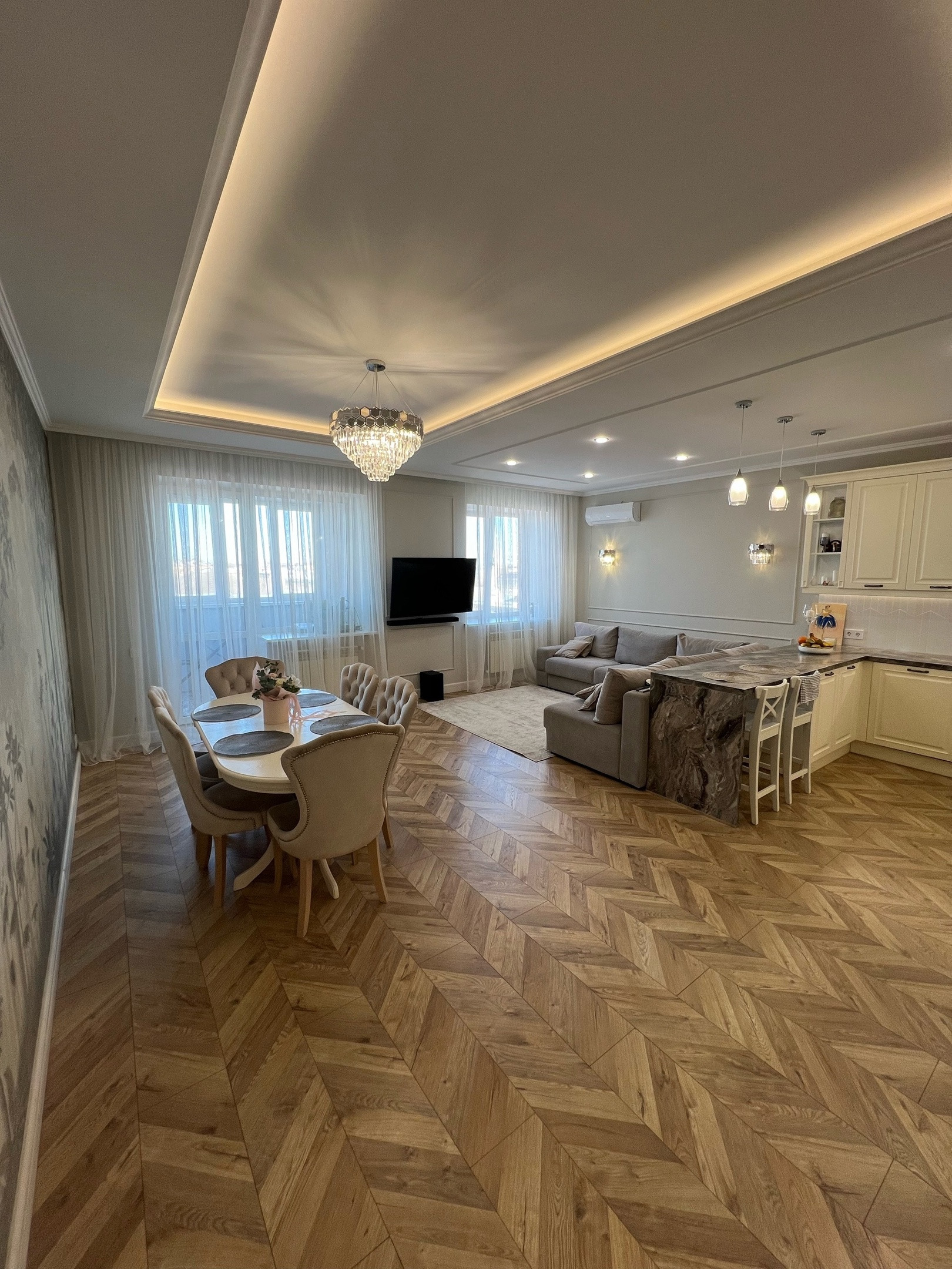 В квартире грамотно сделана вся электропроводка, очень много света, подсветок, бра, люстр, различные варианты включения!