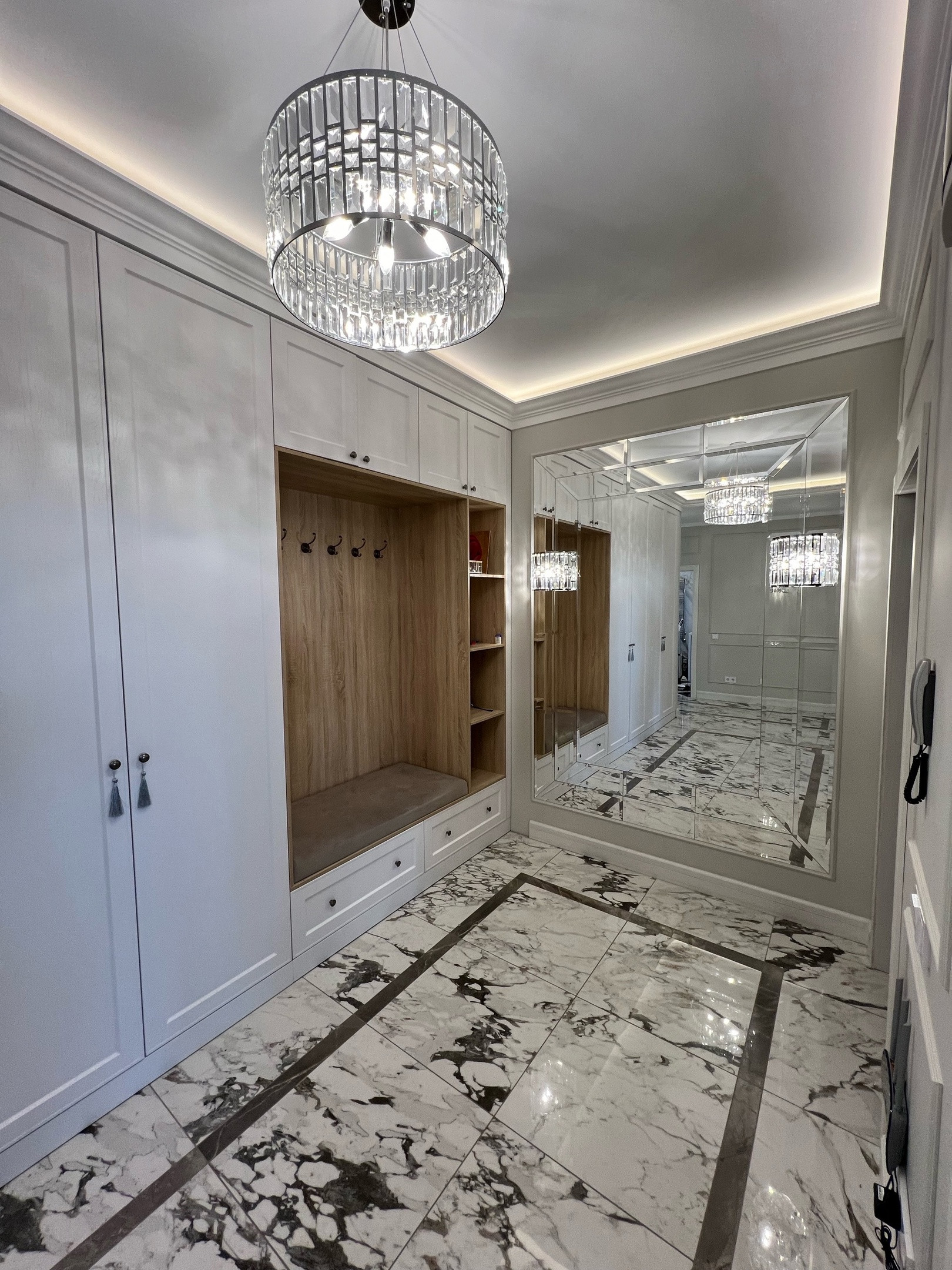 Красивый холл, со встроенным шкафом и большим зеркальным панно!