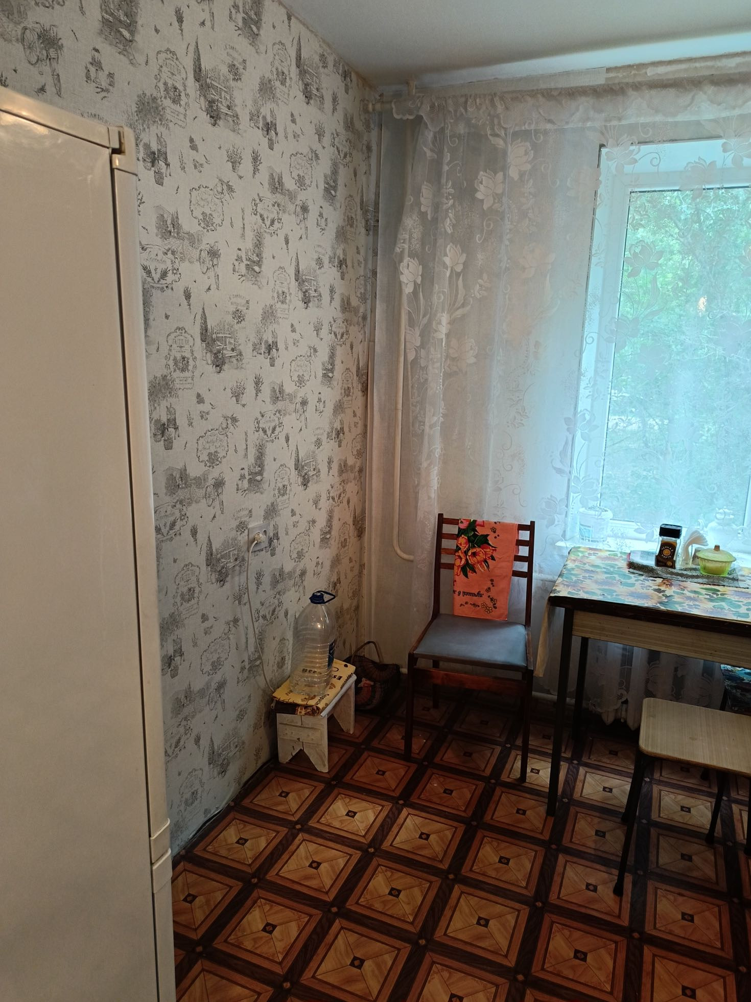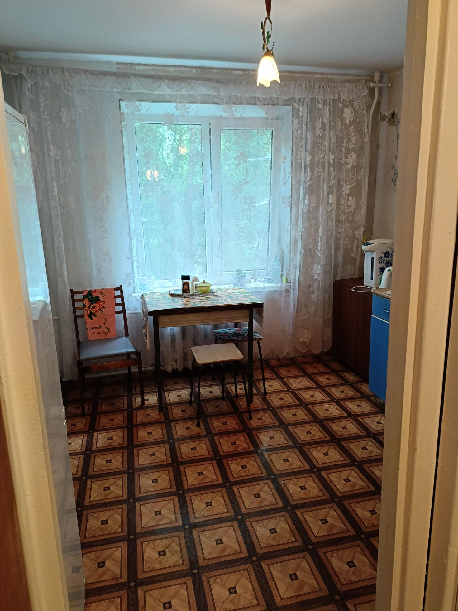 Просторная кухня 9м2 даст разгуляться любой хозяйке. Есть пластиковое окно. Также пластиковые трубы.