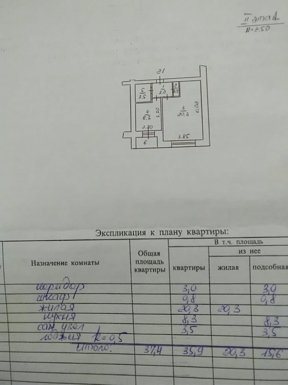 Высота потолков 2.5 м
