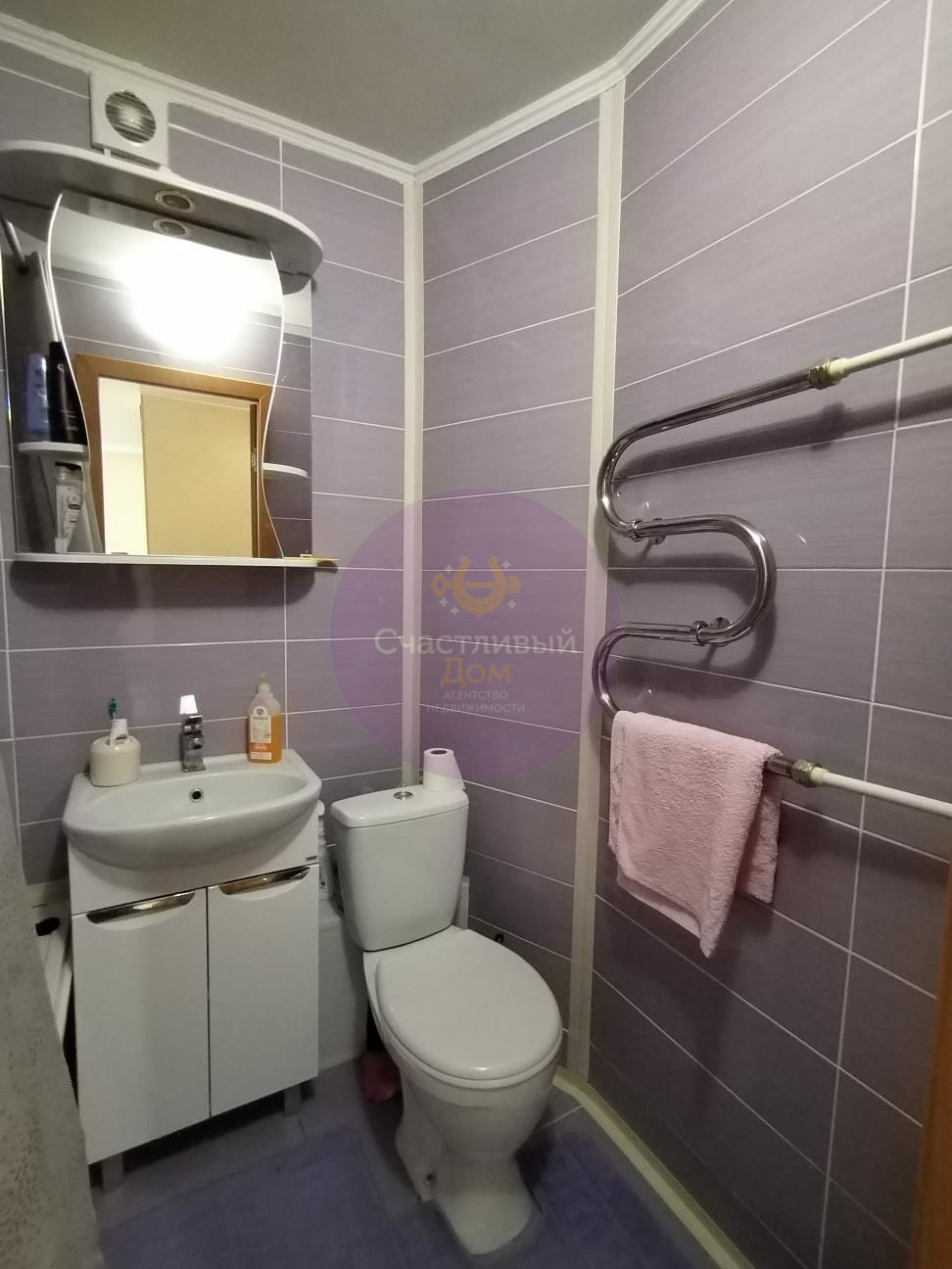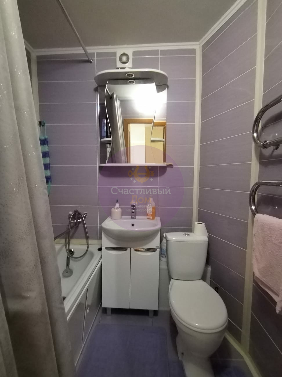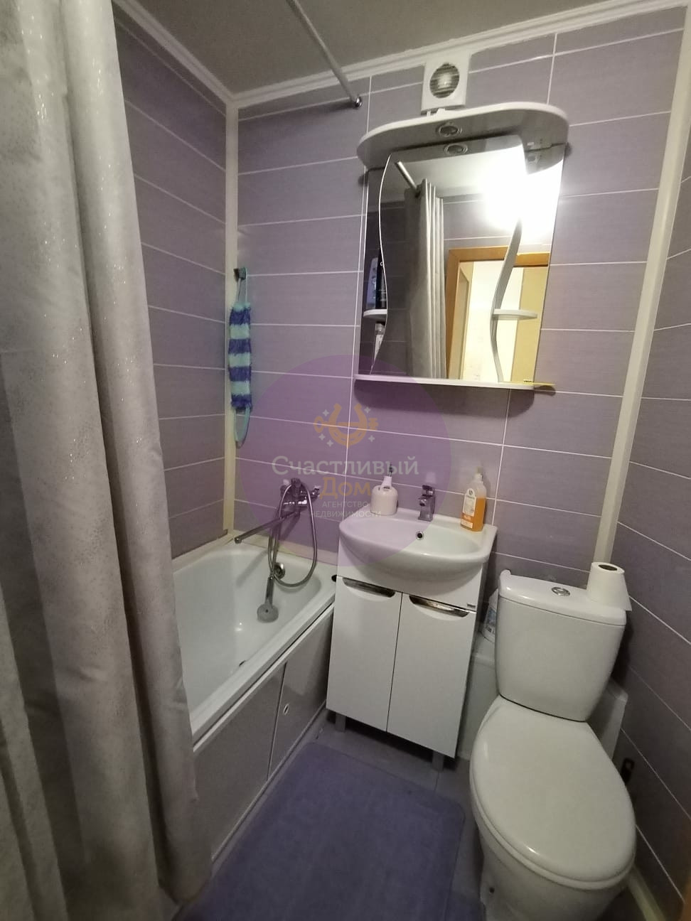 Совмещенный санузел отделан кафелем. Установлены приборы учета (свет, вода).