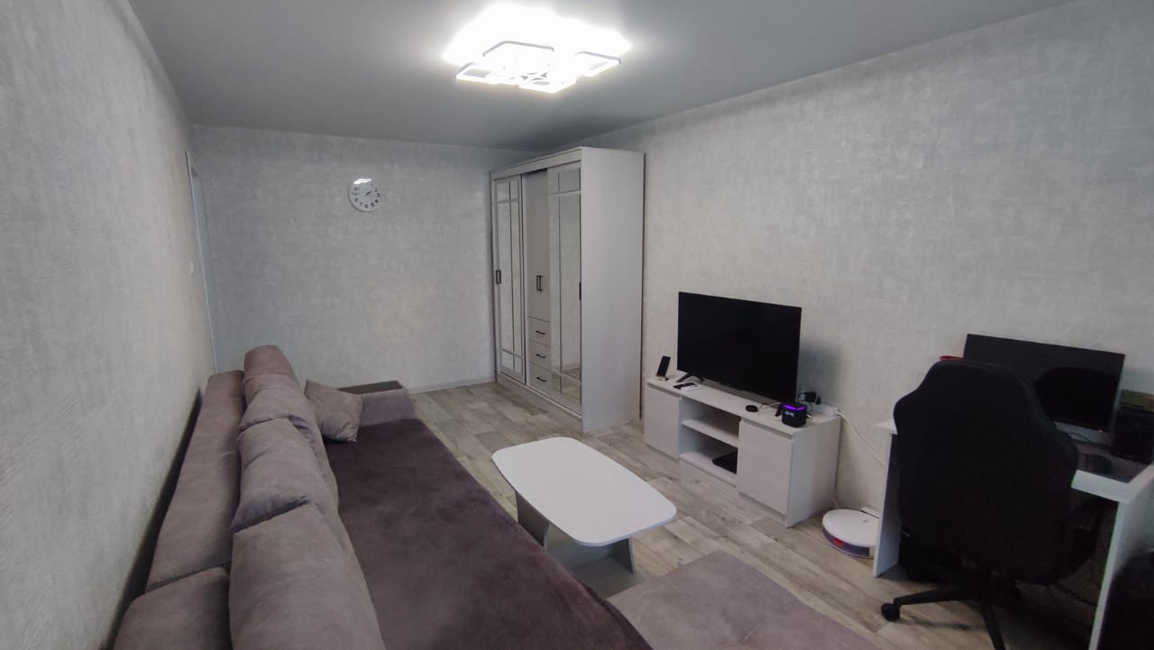 Внутри вас ждёт жилая площадь 18 квадратных метров и кухня площадью 6 квадратных метров, где можно разместить всё необходимое для комфортного приготовления пищи. Евро ремонт, выполненный в квартире, придаёт ей современный вид и ощущение свежести. Также имеется совмещённый санузел и евробалкон, с которого открывается вид на улицу.