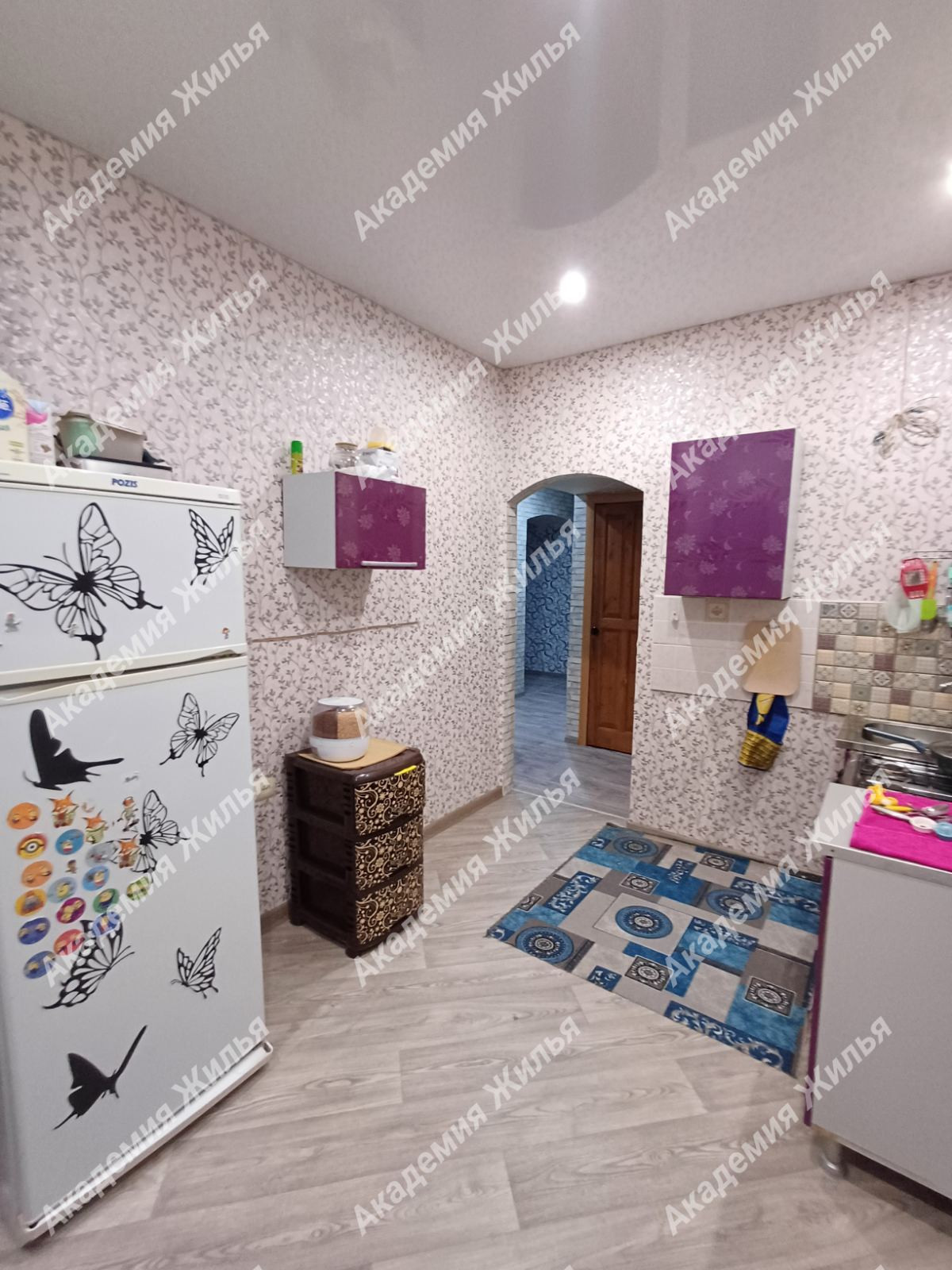 В квартире выполнен хороший косметический ремонт, что позволяет Вам без всяких вложений сразу заехать и жить. Все окна деревянные - современного образца (установлены решётки), по всей квартире натяжные потолки, на полу постелен линолеум, наклеены хорошие обои, установлены добротные двери. Раздельный санузел полностью отделан кафельной плиткой, водопровод пластиковый.