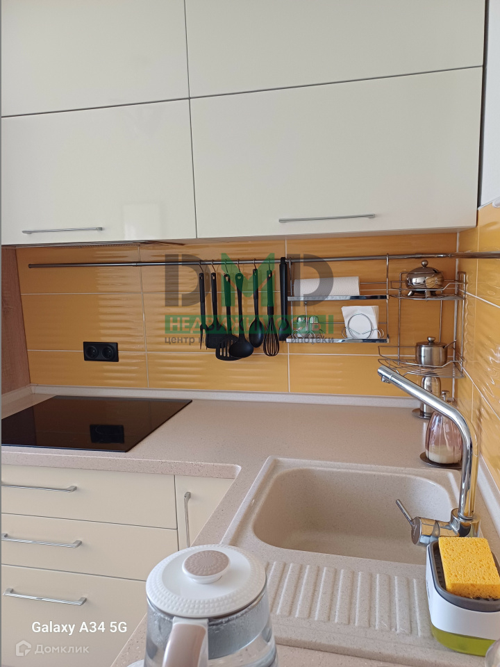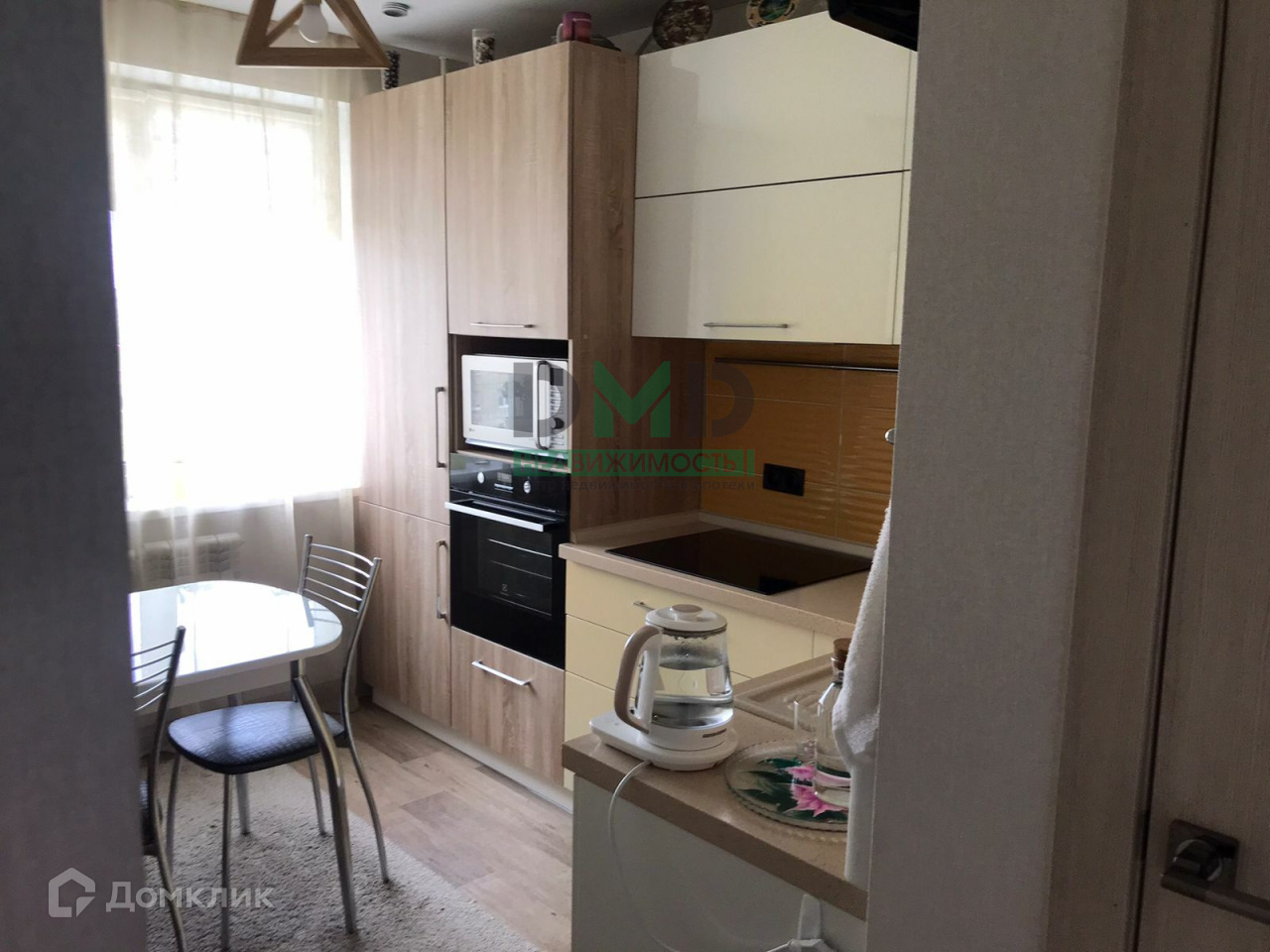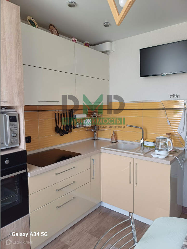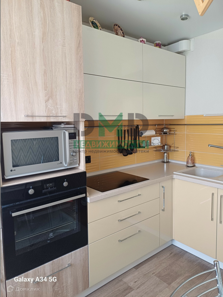 Просторная кухня оборудована современными бытовыми приборами и элегантным кухонным гарнитуром, что создаёт прекрасные условия для кулинарных экспериментов и уютных семейных ужинов. Кухня и техника в ней - холодильник, варочная индукционная плита, духовой шкаф, вытяжка, стиральная машинка.