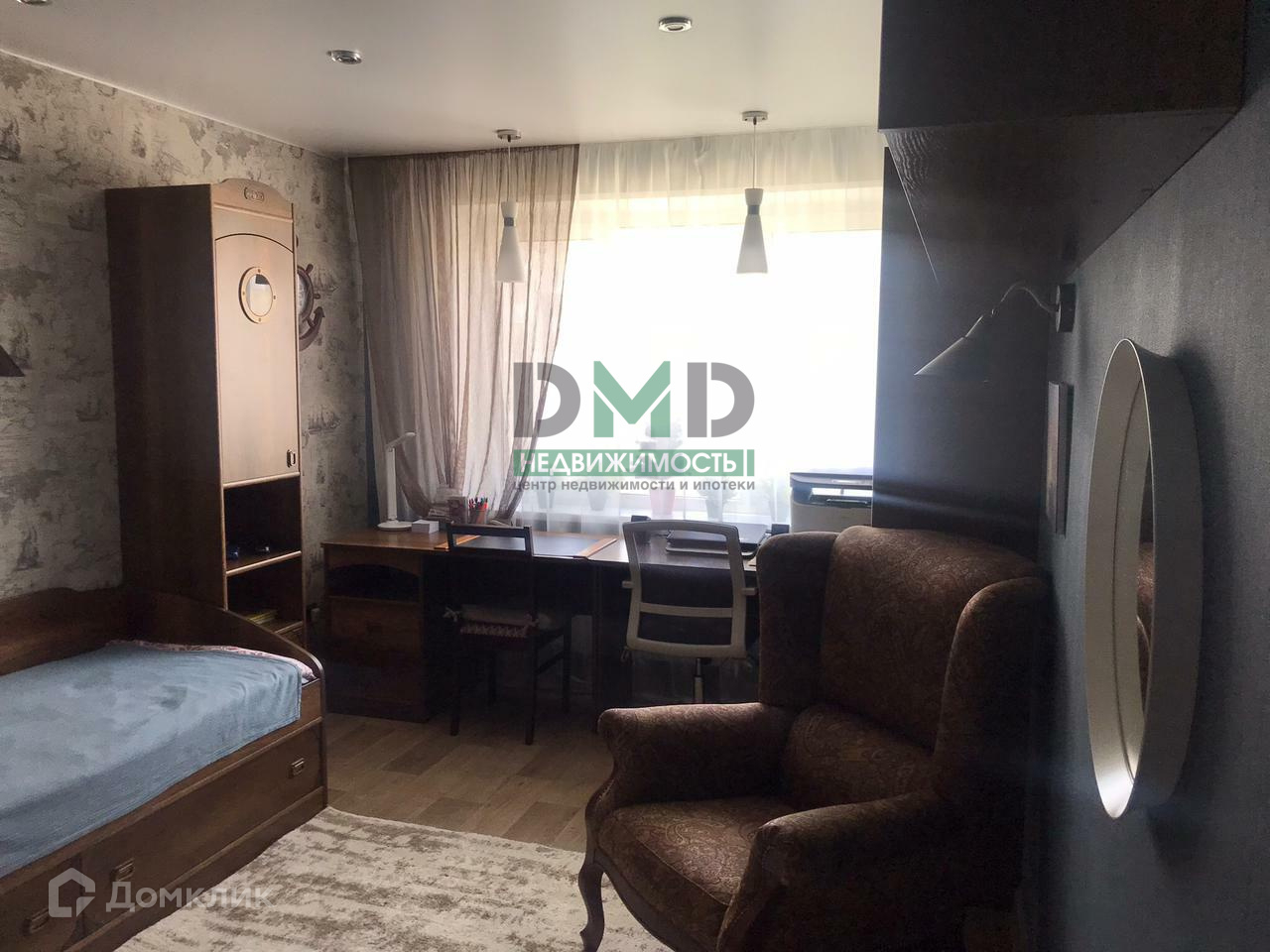 Детская комната может быть использована как кабинет и уже оснащена вместительными шкафами, что обеспечивает порядок и организованность. И также есть сплит-система.