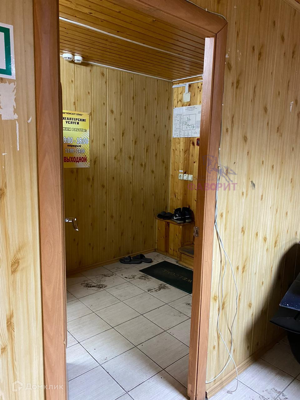 Вход в нежилое помещение осуществляется через металлическую дверь. Внутри помещения очень тепло и уютно благодаря деревянной обшивке. В помещении есть хорошее освещение, противопожарная сигнализация и проводной интернет. Вы не столкнетесь с проблемами связи или коммуникации. Пол в каждой зоне выложен кафельной плиткой, что обеспечивает не только эстетику, но и функциональность помещения. К нему подключена холодная и горячая вода, и есть счетчики на воду и электричество. Окна пластиковые, и помещение также имеет отдельный выход на улицу.