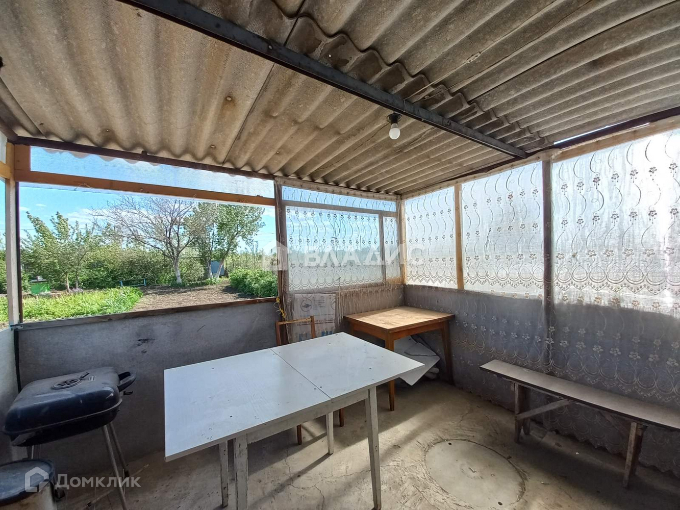 На участке установлен уютный домик (4*4) с утепленными стенами и верандой, в котором можно жить до октября-ноября; залит качественный фундамент под баню (5*5), проведено электричество и установлены 2 счетчика учета, стоит забор из профлиста, трубы заменены на пластиковые. Есть уютные качели.