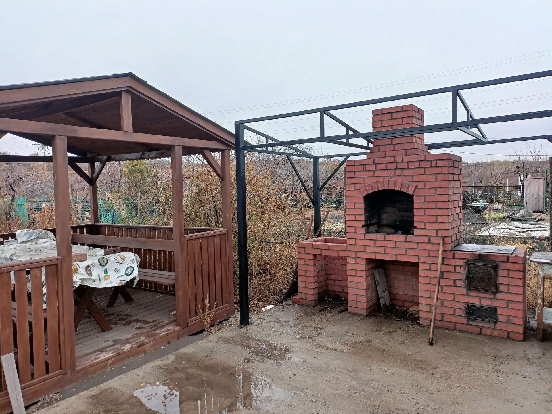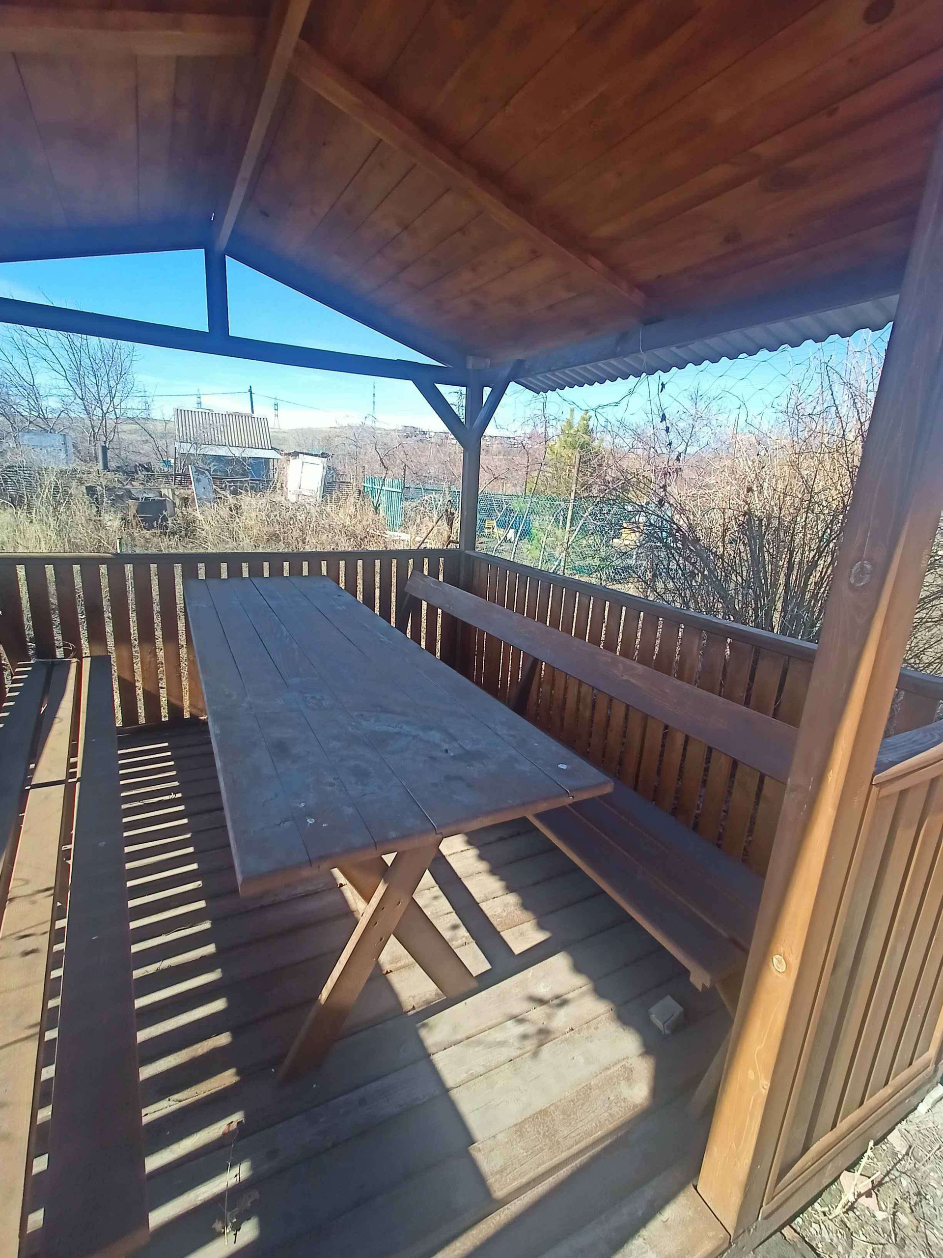 Сад полностью огорожен. На участки имеется домик. Мангальная зона: деревянная беседка с лавочками и столиком, печь с мангалом(построено в 2021г). Новый деревянный туалет. Имеется скважина с качком, можно подключить насос. Много различных насаждений. Электричество круглый год. Охрана. По периметру кооператива видеонаблюдение. Не приватизированный.