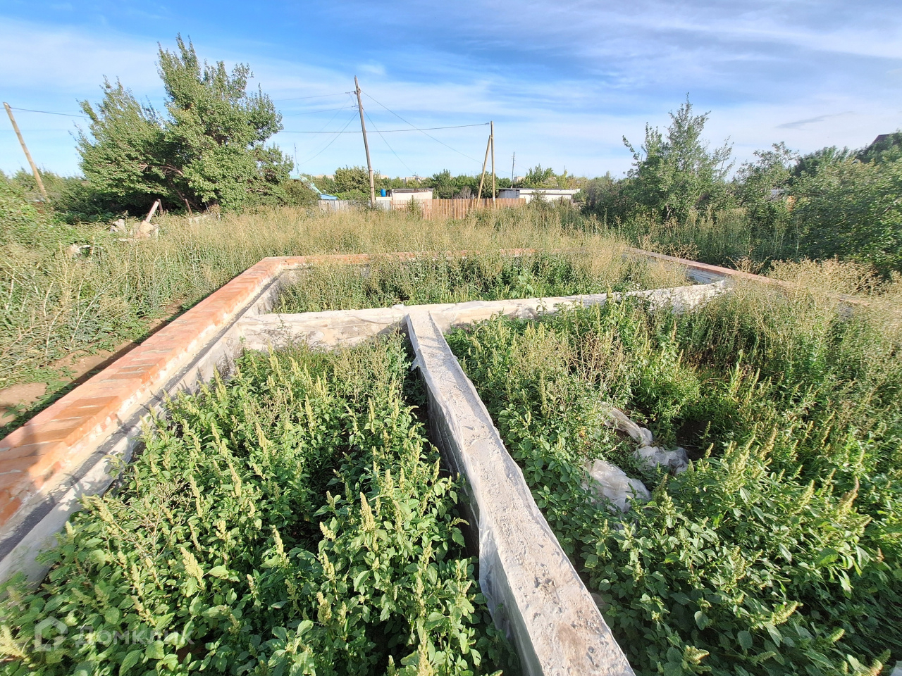 На участке залит фундамент размерами 9 м * 9 м.