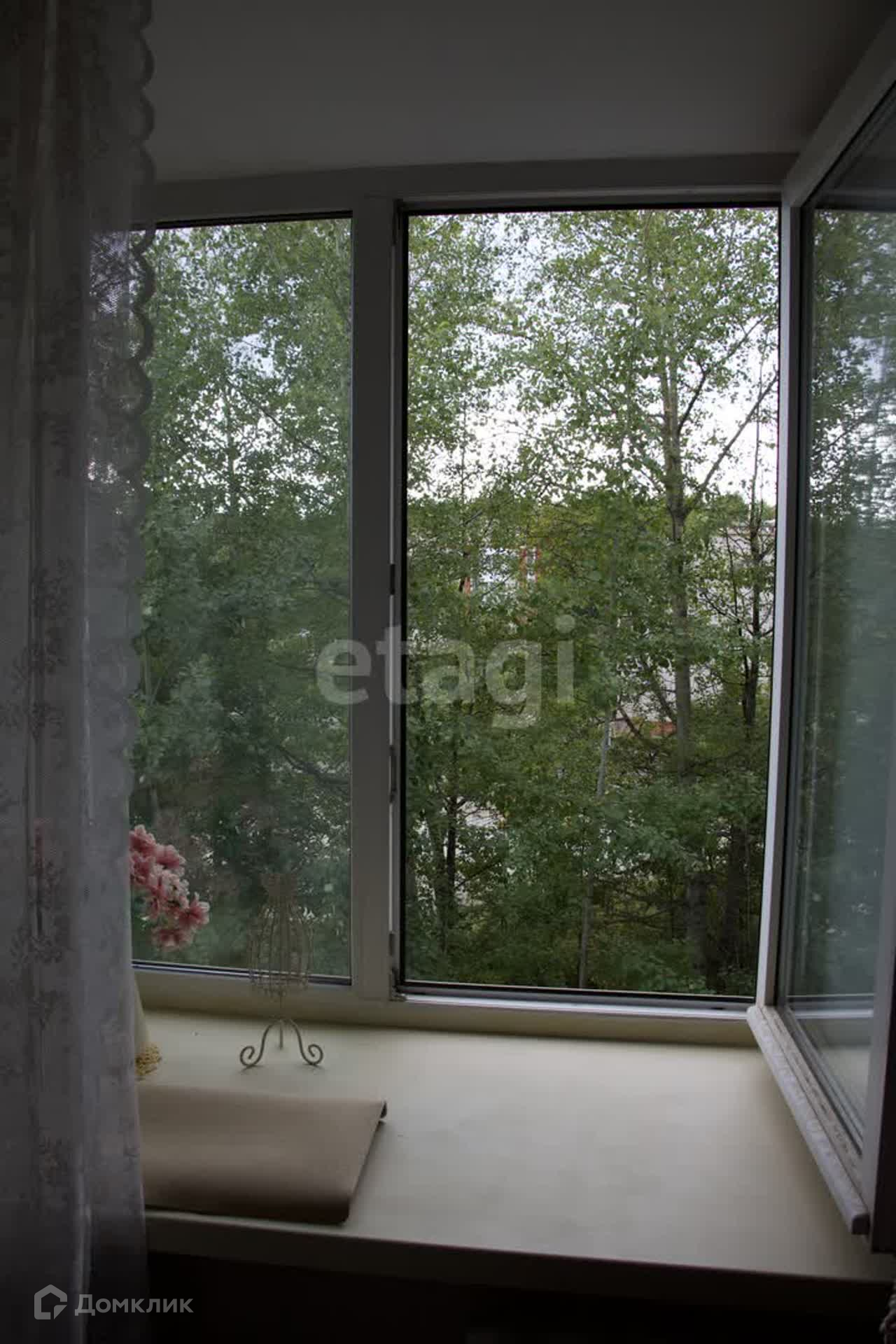 Окна выходят на обе стороны дома, во двор и на сквер.
