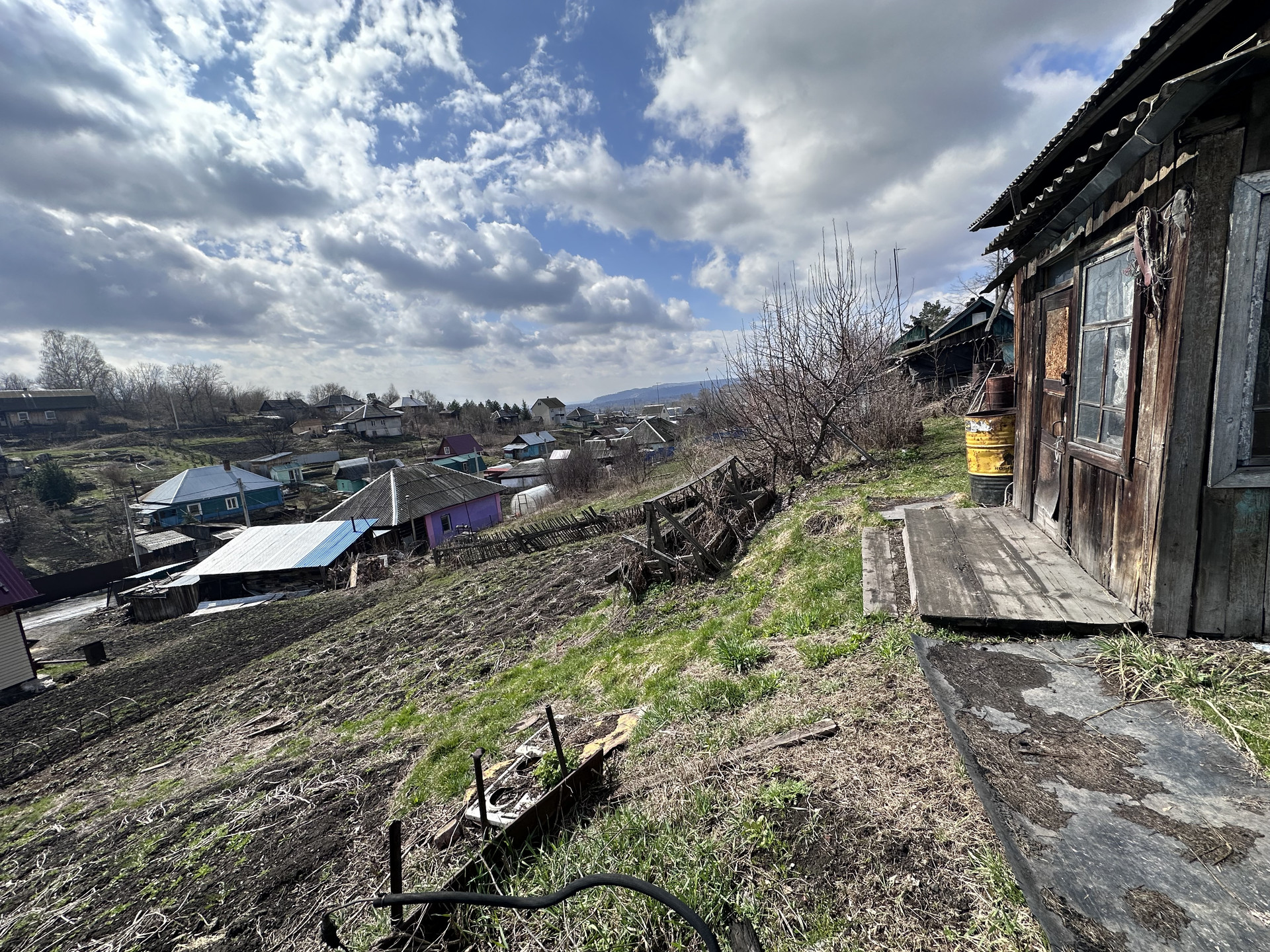 На участке есть вишня, яблони, гараж.