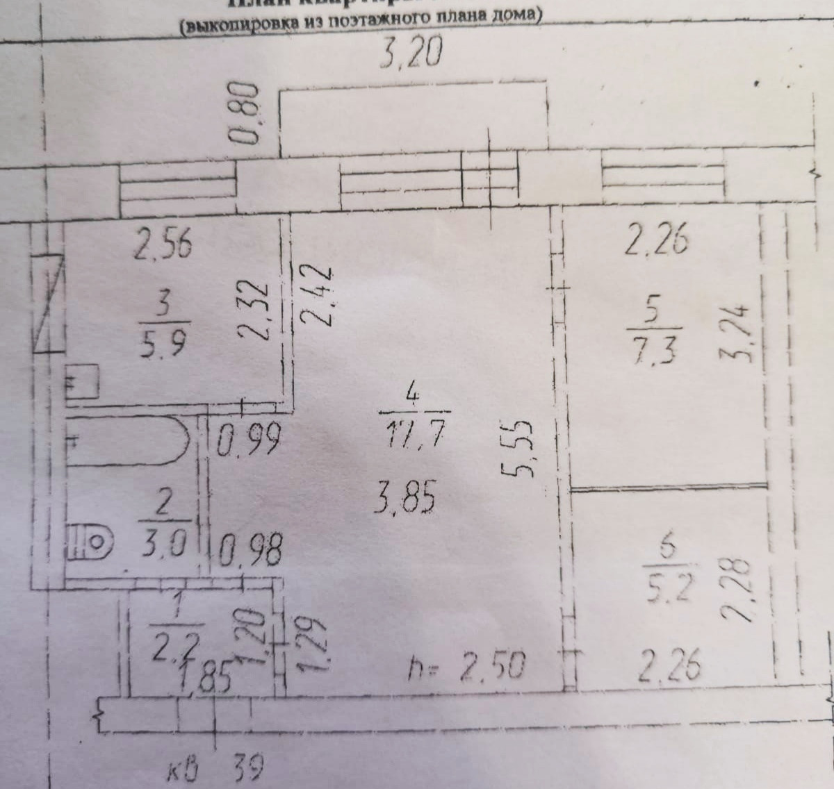 Общая площадь 41.3 м2