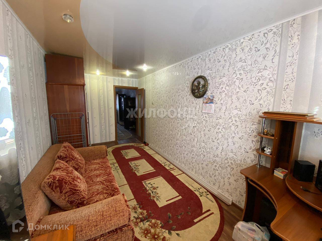Натяжные потолки с точечным освещением. Напольное покрытие - линолеум. Стены оклеены обоями.