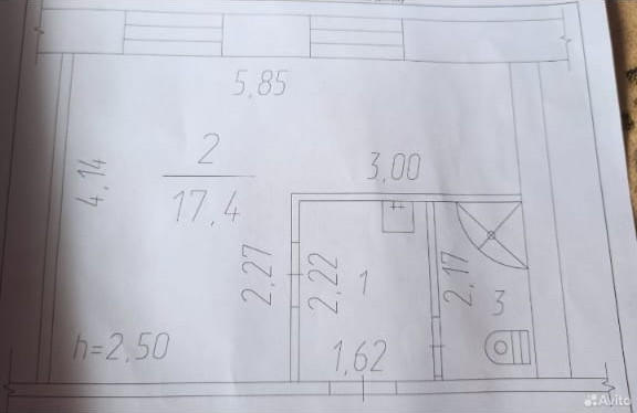 Общая площадь 22.7 м2