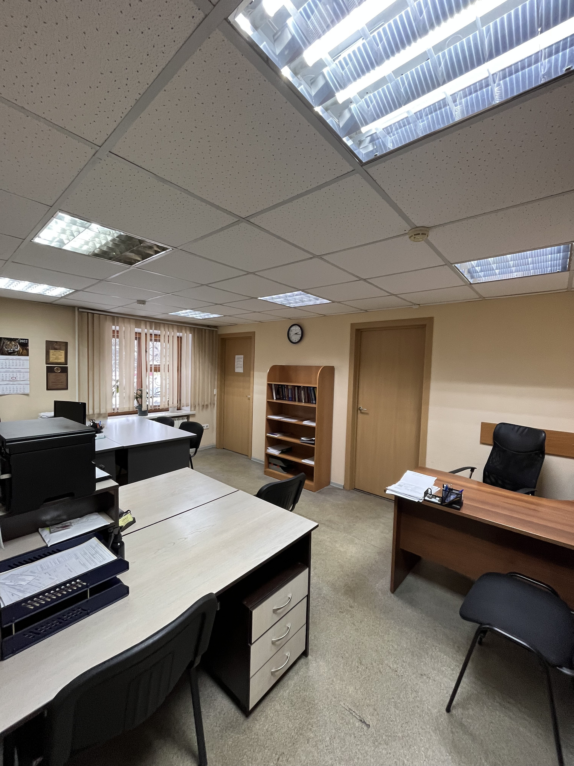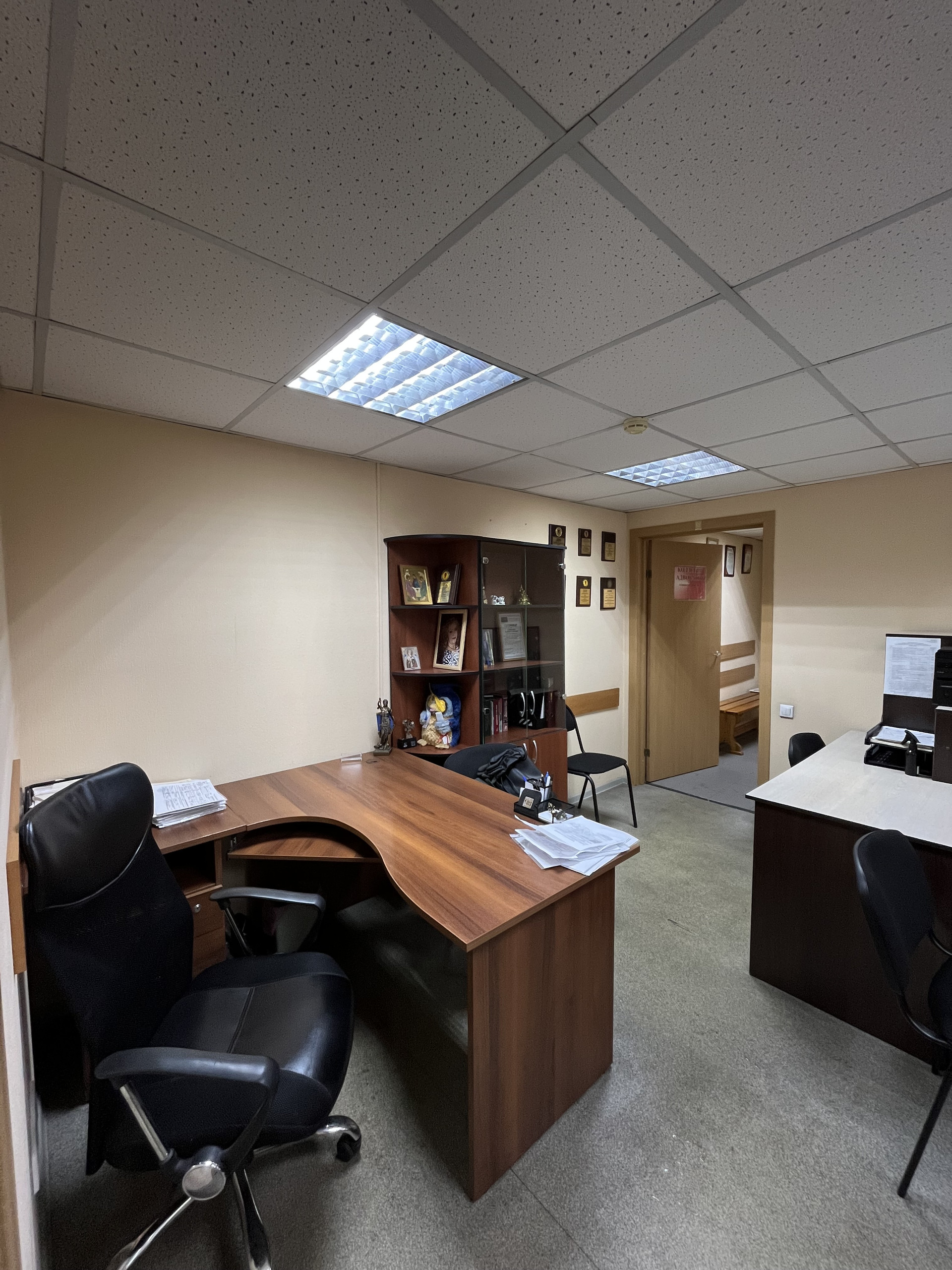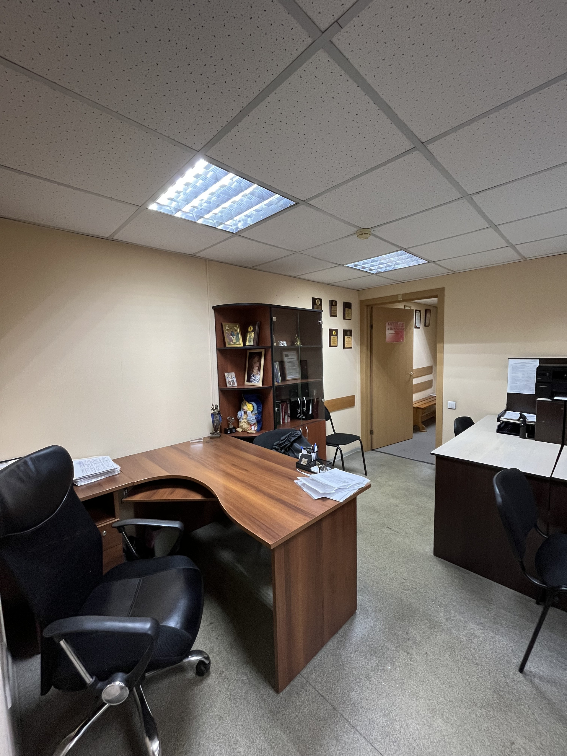 В помещении два отдельных кабинета,проходимая общая кухня,а так же сан.узел +кухонная зона.