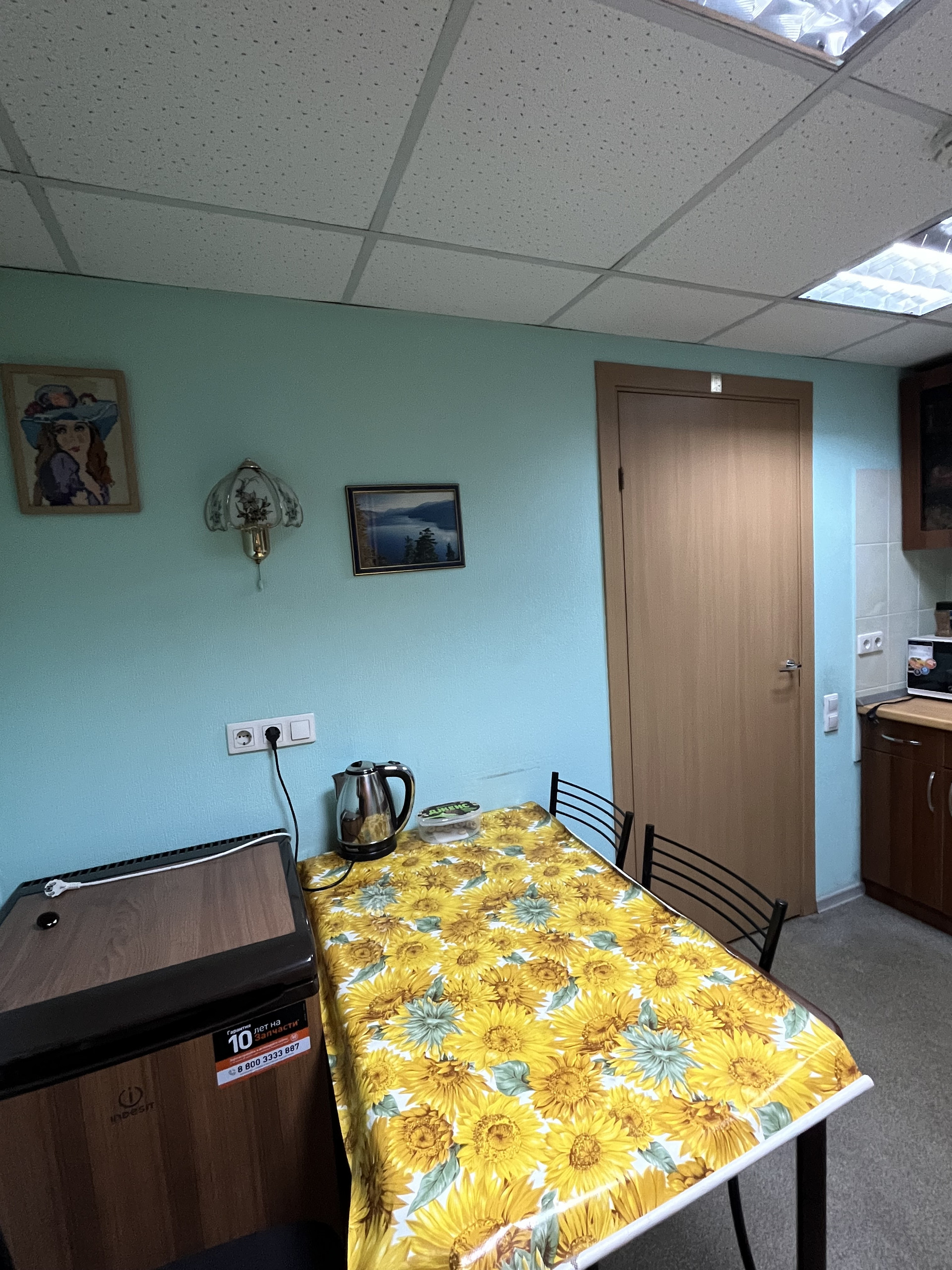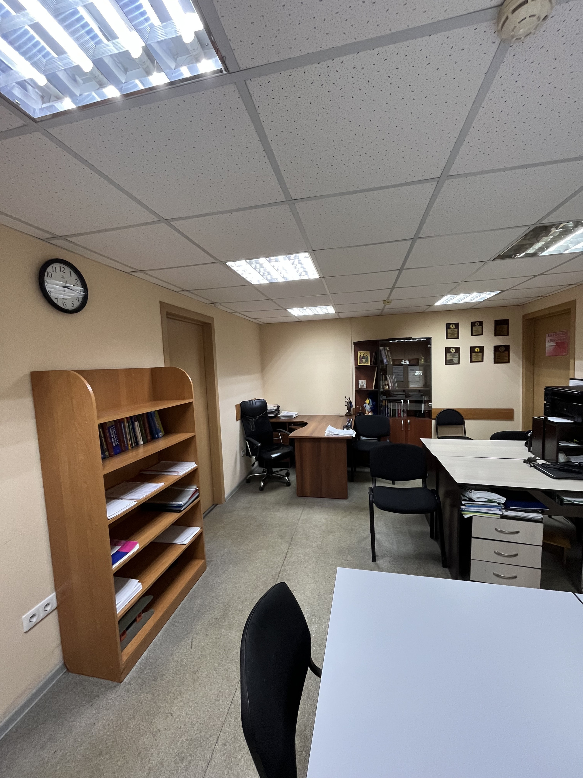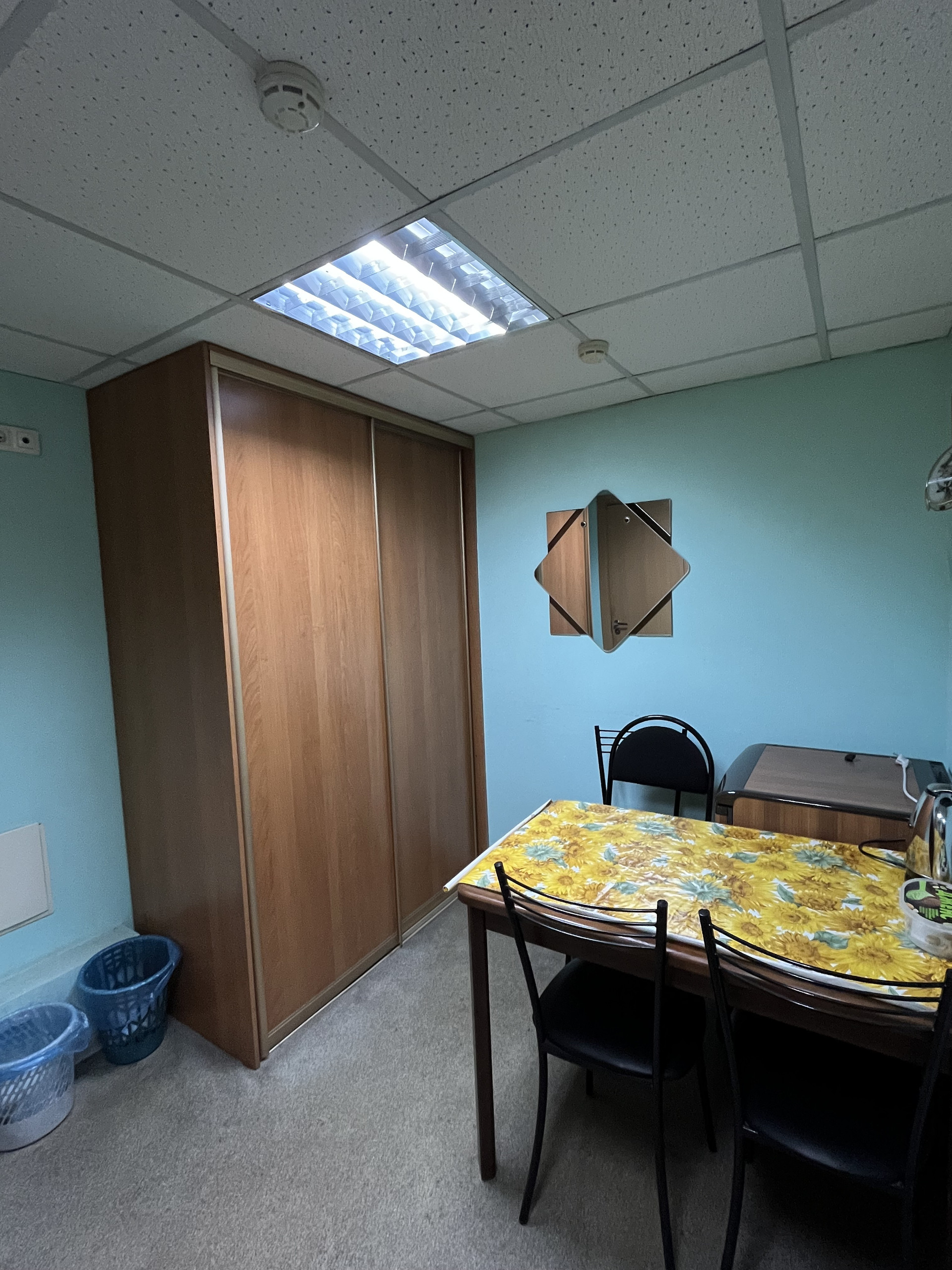 В помещении два отдельных кабинета,проходимая общая кухня,а так же сан.узел +кухонная зона.