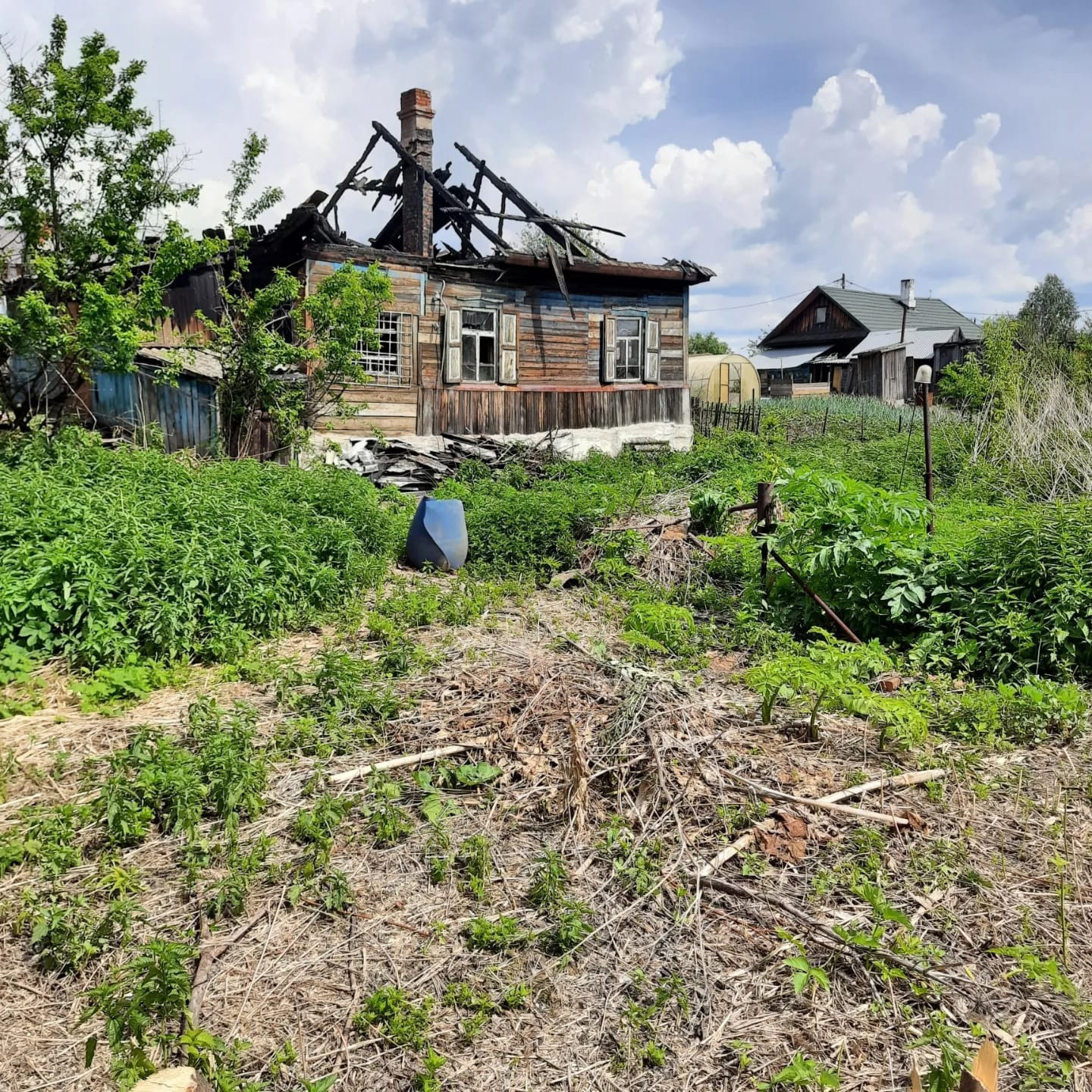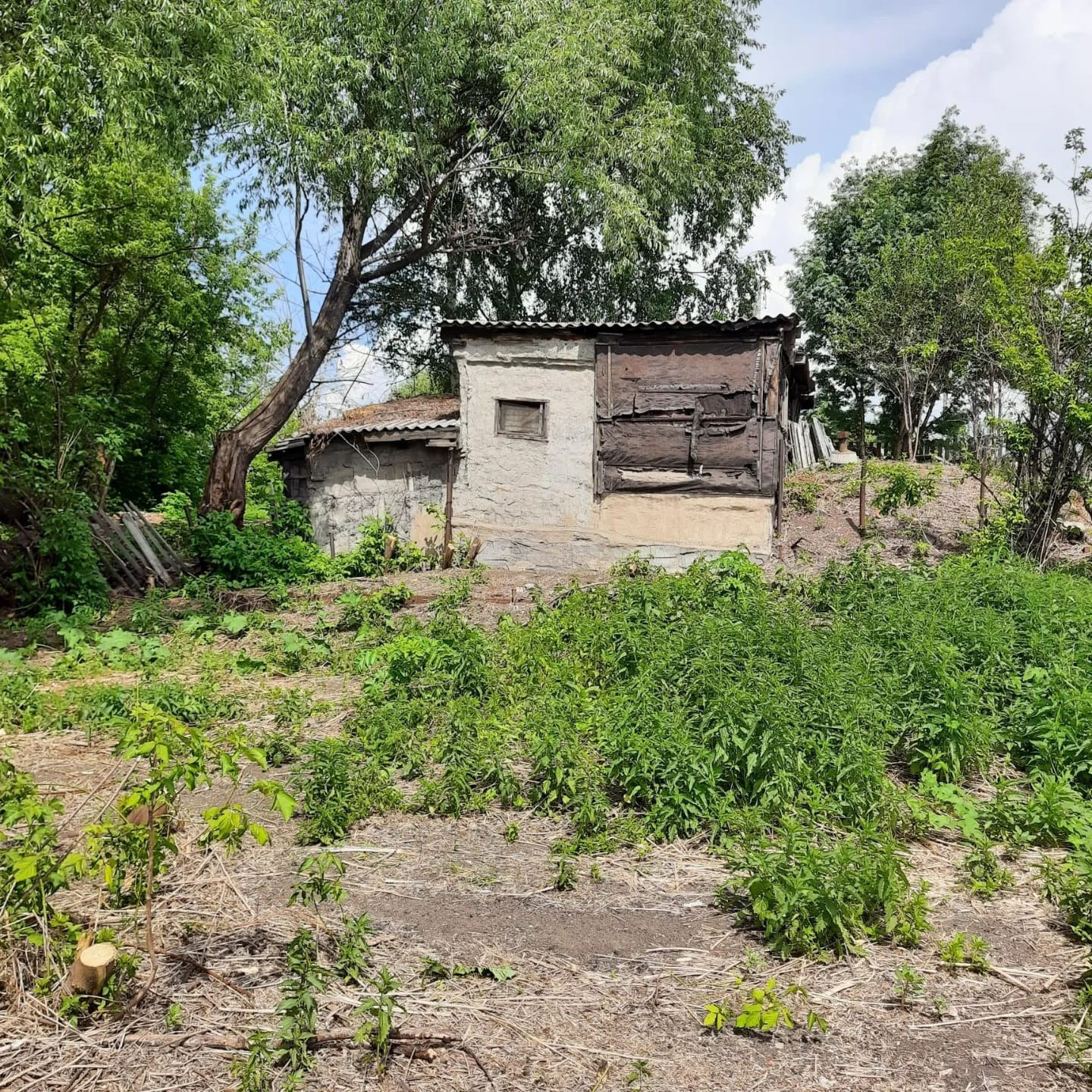 На территории зем.участка находятся постройки : дом ( требуется восстановить крышу), баня, сарай, углярка.