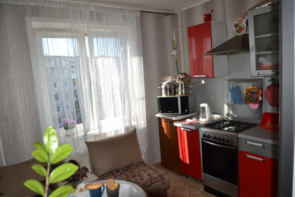 Жилая площадь составляет 19.3 квадратных метров, а кухня – 9.8 квадратных метров, что позволяет комфортно разместиться и создать уютное пространство для приготовления пищи и отдыха. В квартире выполнен косметический ремонт, благодаря чему она готова к заселению без дополнительных вложений.