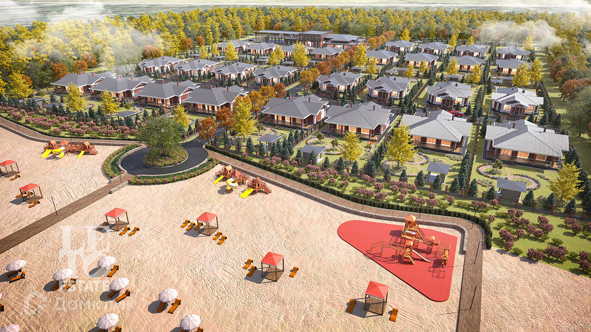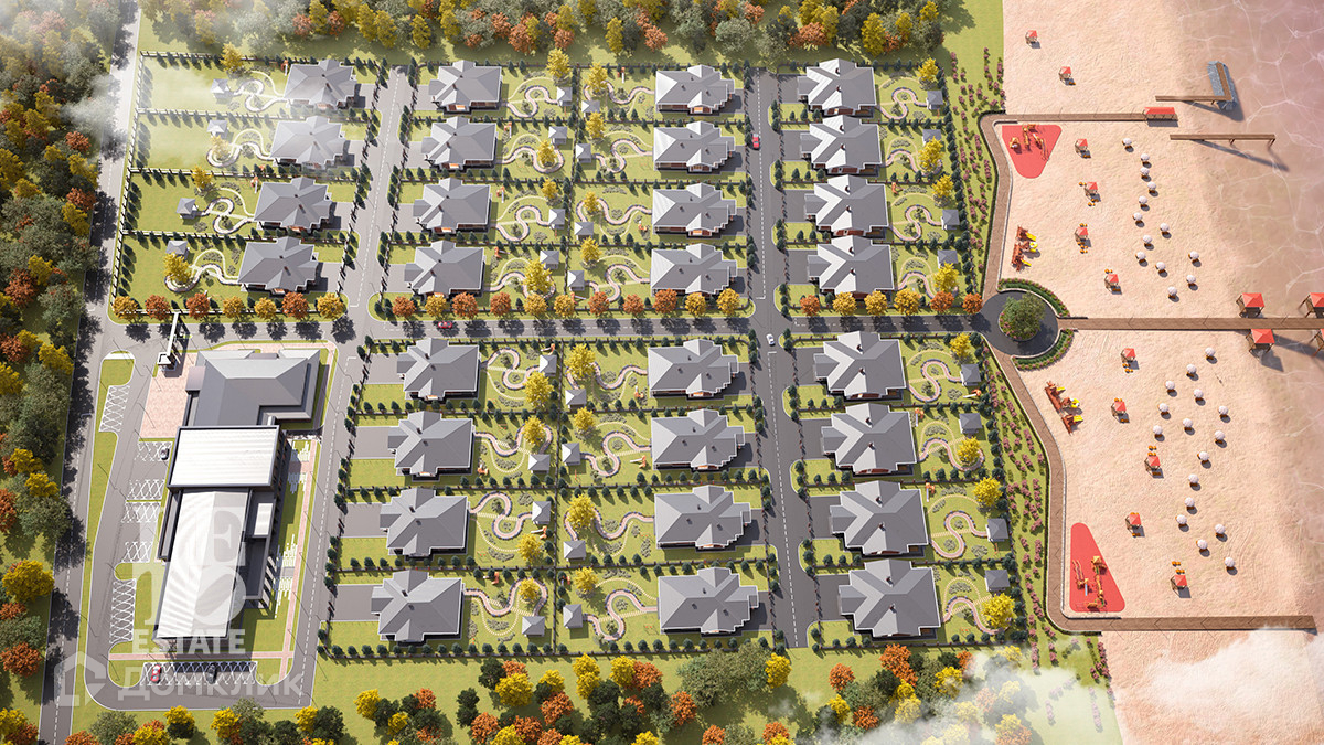 Поселок представляет собой охраняемы жилой комплекс состоящий из 32-х одноэтажных домов, построенных в едином архитектурном стиле, площадью от 250 кв м.