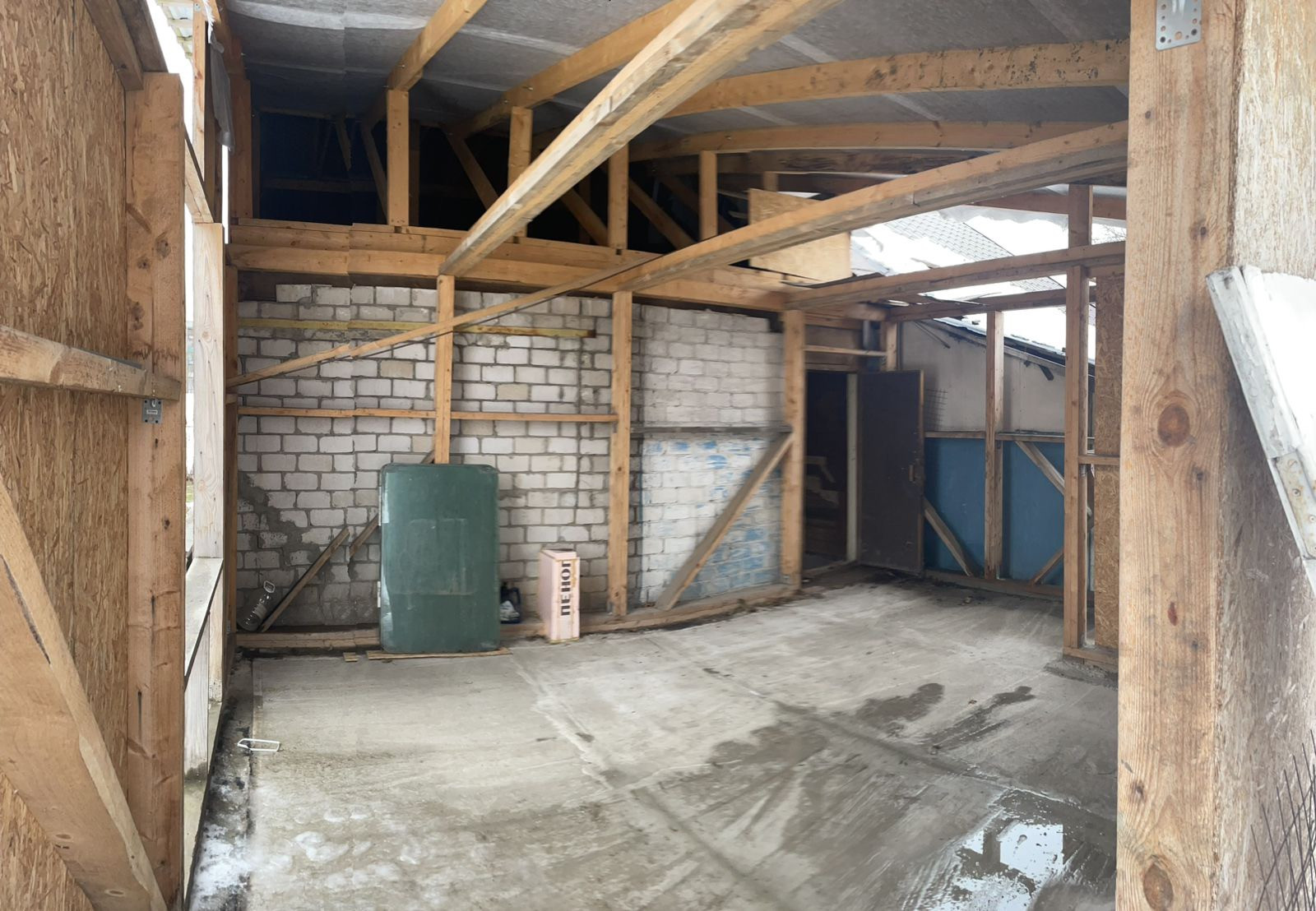 Полы по всему периметру дома, также включая веранду залиты бетонной стяжкой .