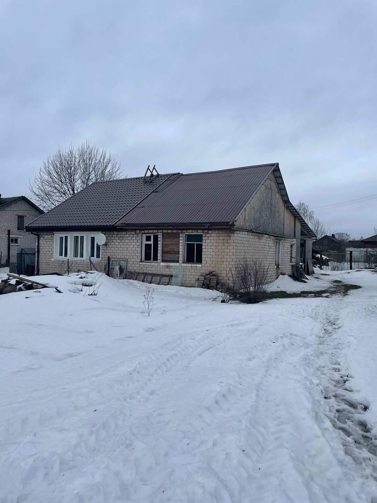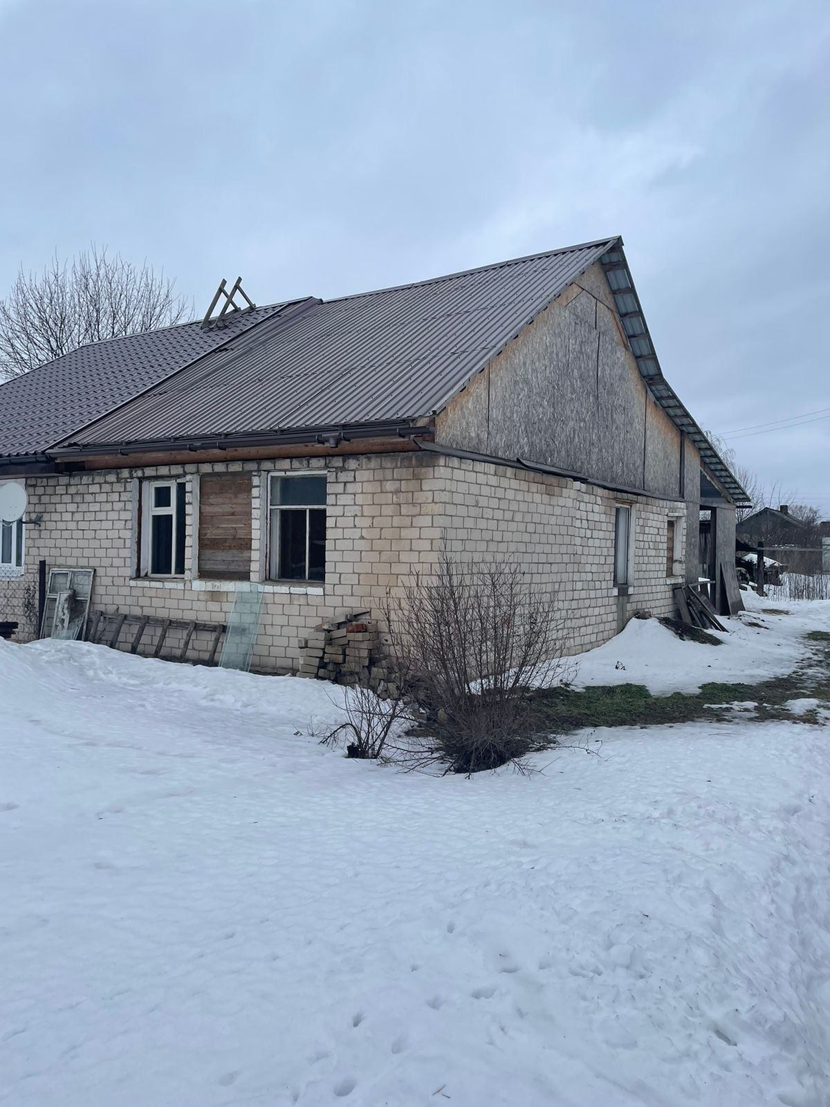 Газовая труба проходит рядом с участком.Сделана перепланировка на 2-ве комнаты и кухня -гостиная. В кухне выведена точка под раковину. В доме черновая отделка . Крыша новая, перекрыта металло-профилем
