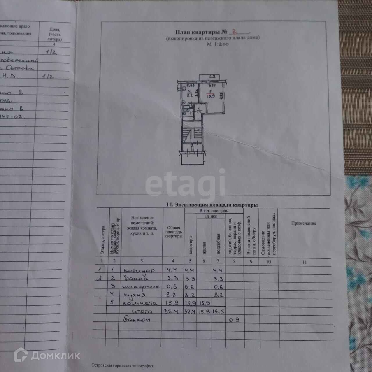 Общая площадь 32.4 м2