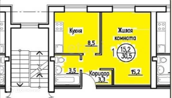 Общая площадь 30.5 м2