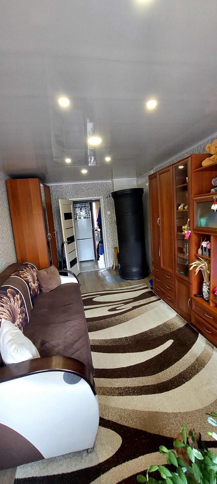 однокомнатная квартира с частичными удобствами,  есть холодная вода, горячая бойлер, душевая кабина, газ балонный, печное отопление, центральное водоотведение. Есть сарай под дрова.Интернет,кабельные телевидение..