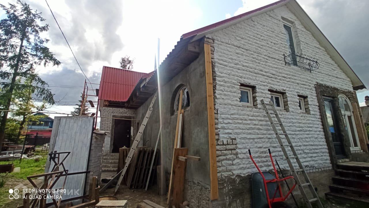 Внутри дом частично из крепкого бруса,так как изначально это был старинный деревянный дом ,но умелые хозяева снаружи полностью отреставрировали его кирпичом и построили отдельное помещение под сан узел,душ,туалет и сауну с отдельным входом.
