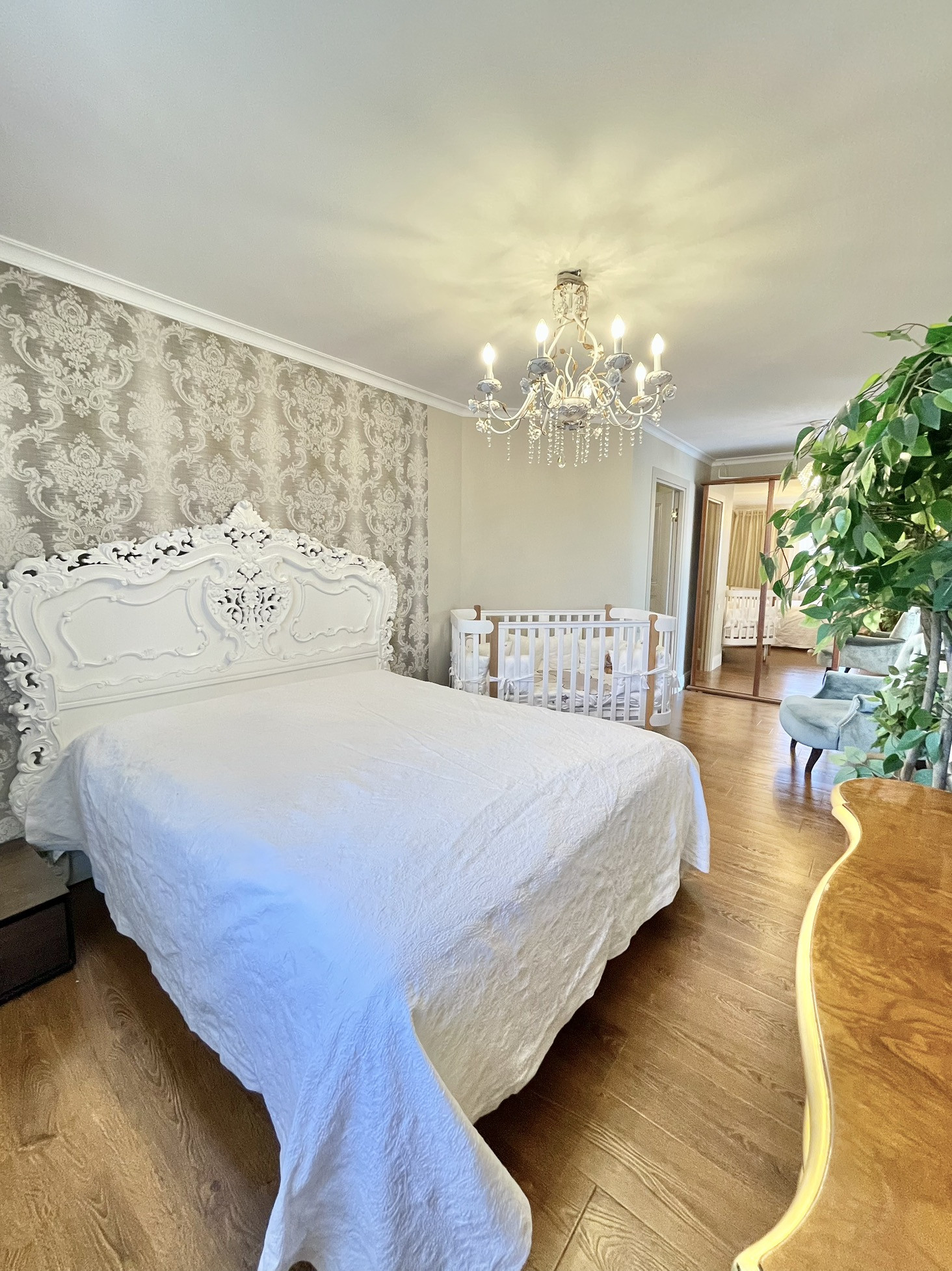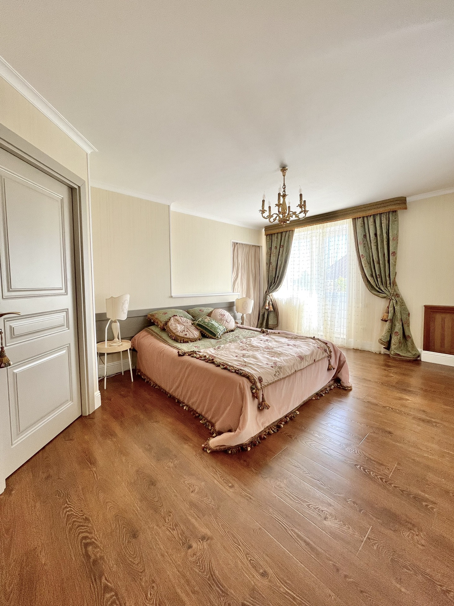 Три полноценные спальни с гардеробными, кабинет, с/у. С одной спальни выход на огромную террасу, где можно поставить удобные лежаки и загорать, а вечером попить чая за задушевными беседами.