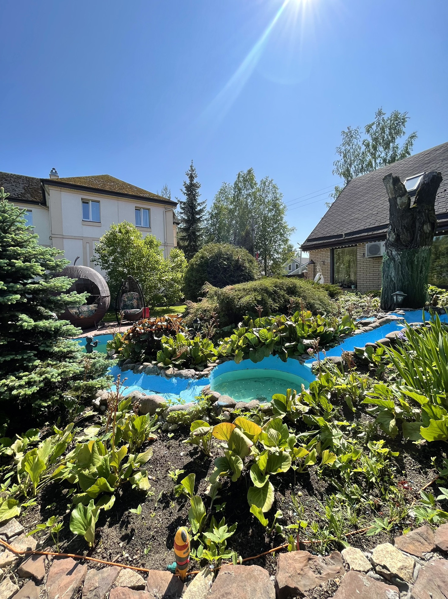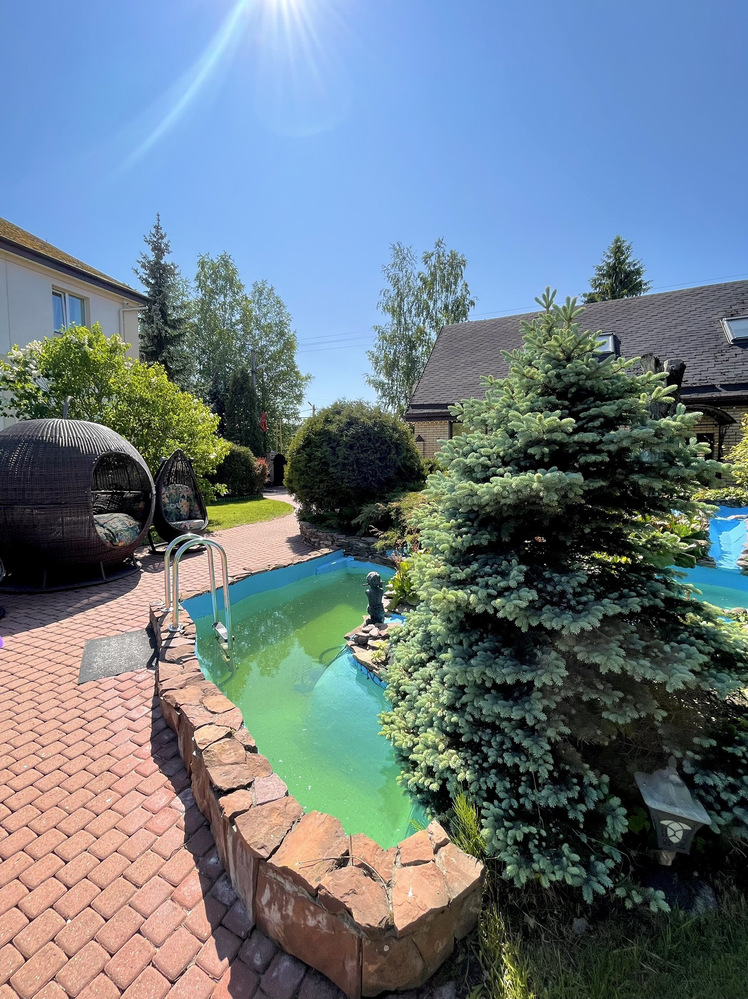 Ландшафтный дизайн не оставит равнодушным никого. Каждый уголок продуман и имеет свою историю. Декоративный бассейн, мостики, барбекю, место для настольного тенниса и лежаков…
