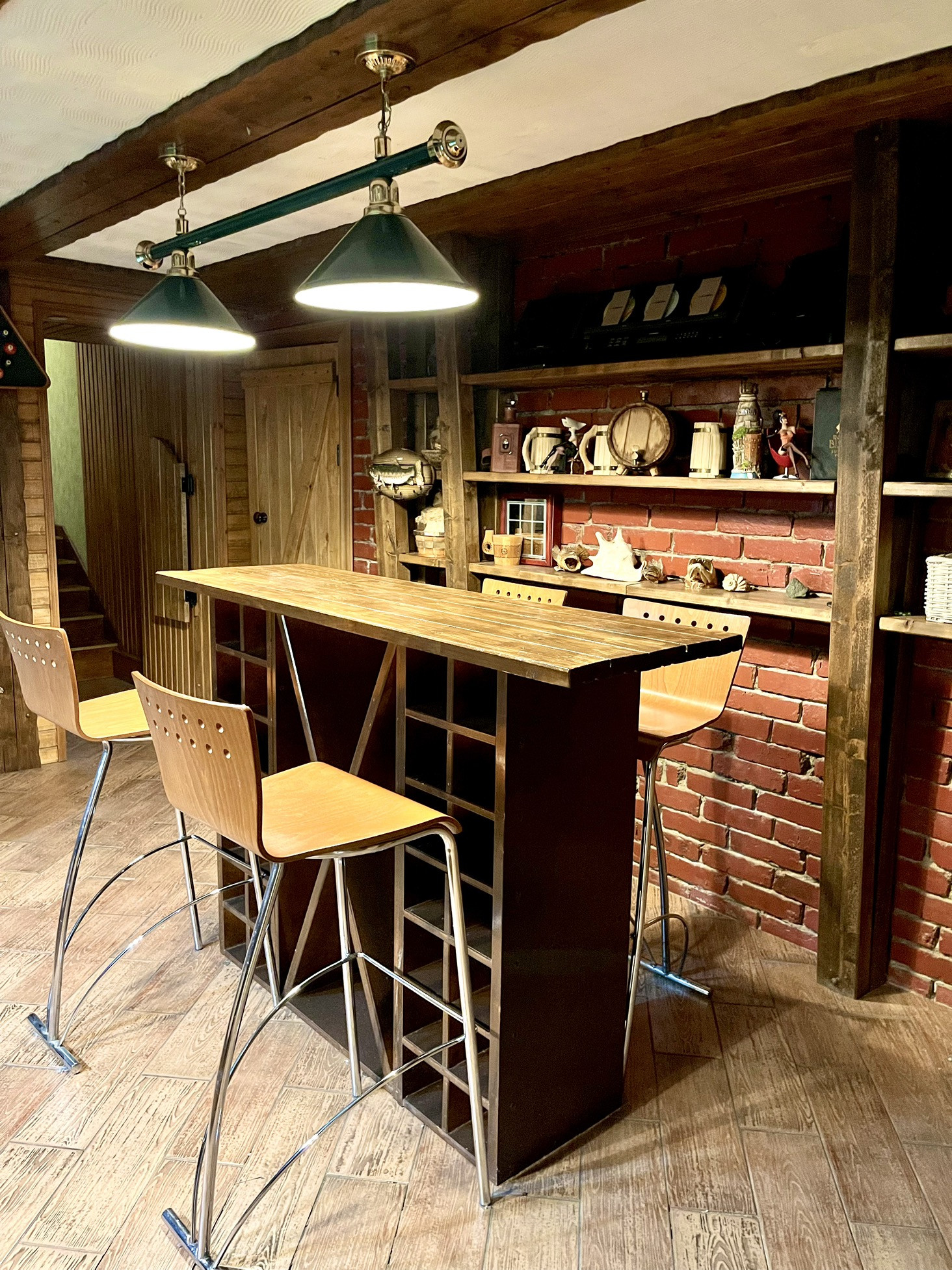 Вы и ваши друзья оценят по достоинству это пространство для совместного отдыха: бильярд, сауна, бар, дартс, настольные игры. Здесь же у нас постирочная и техническая комната с важными установками оснащения тепла дома.