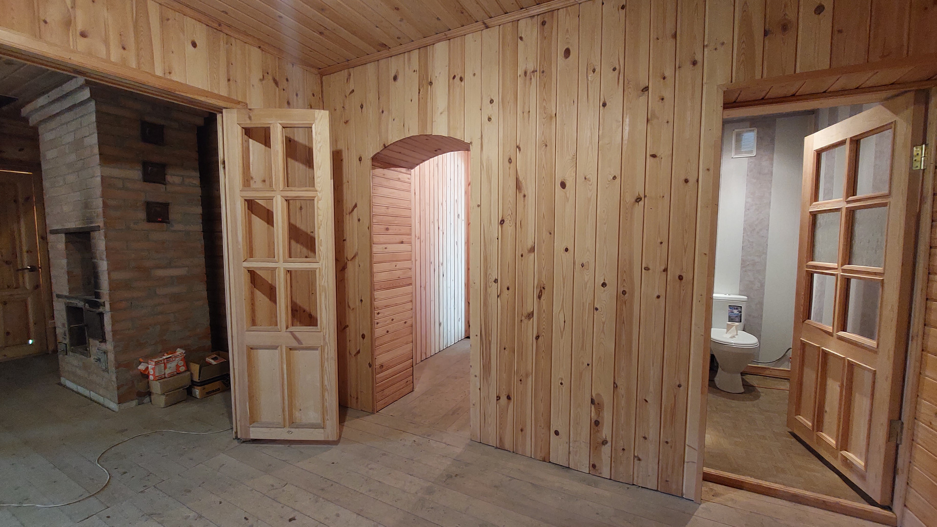 На втором этаже: большой холл, две комнаты, гардеробная, площадь 74,2 кв.м.