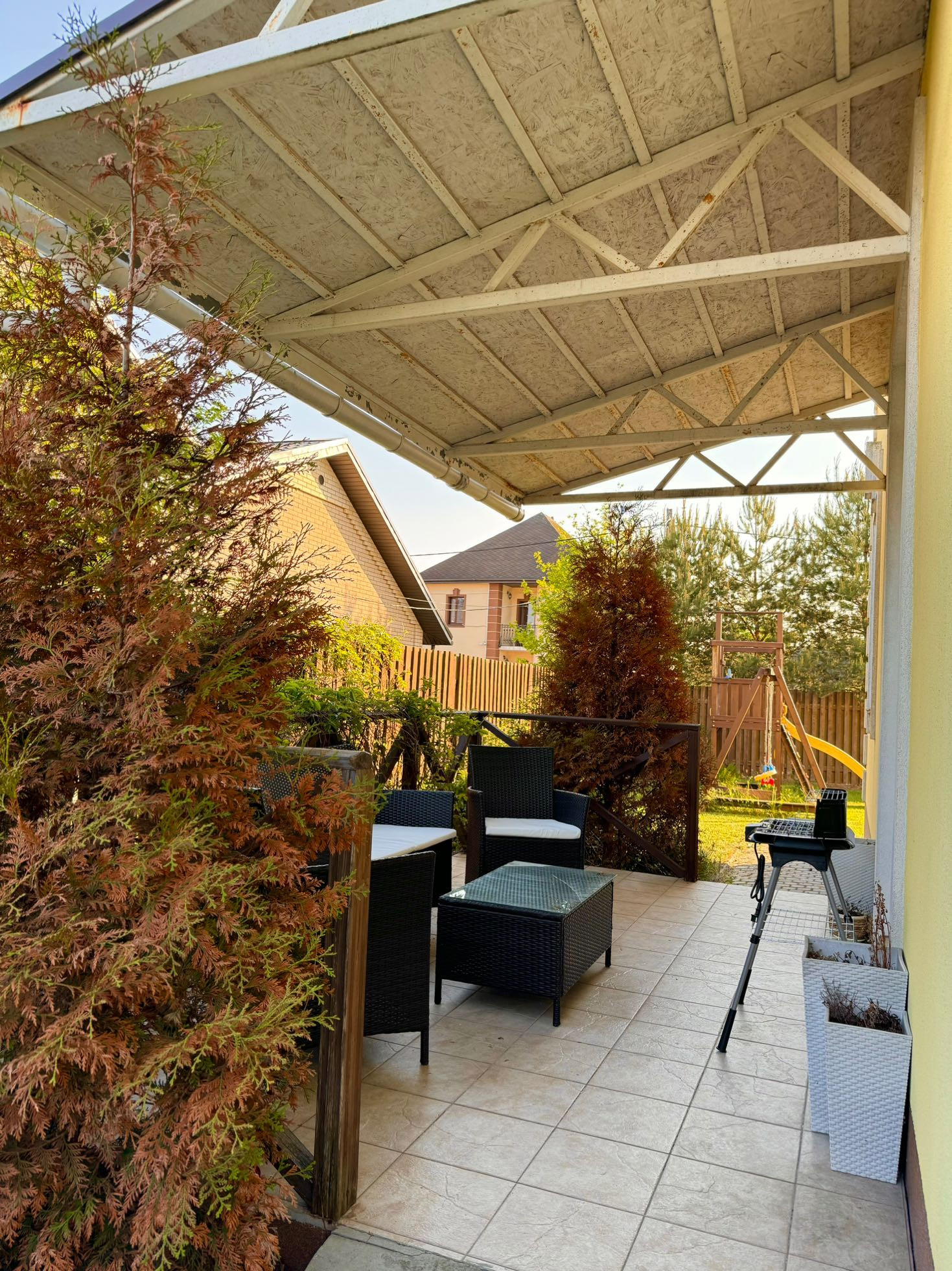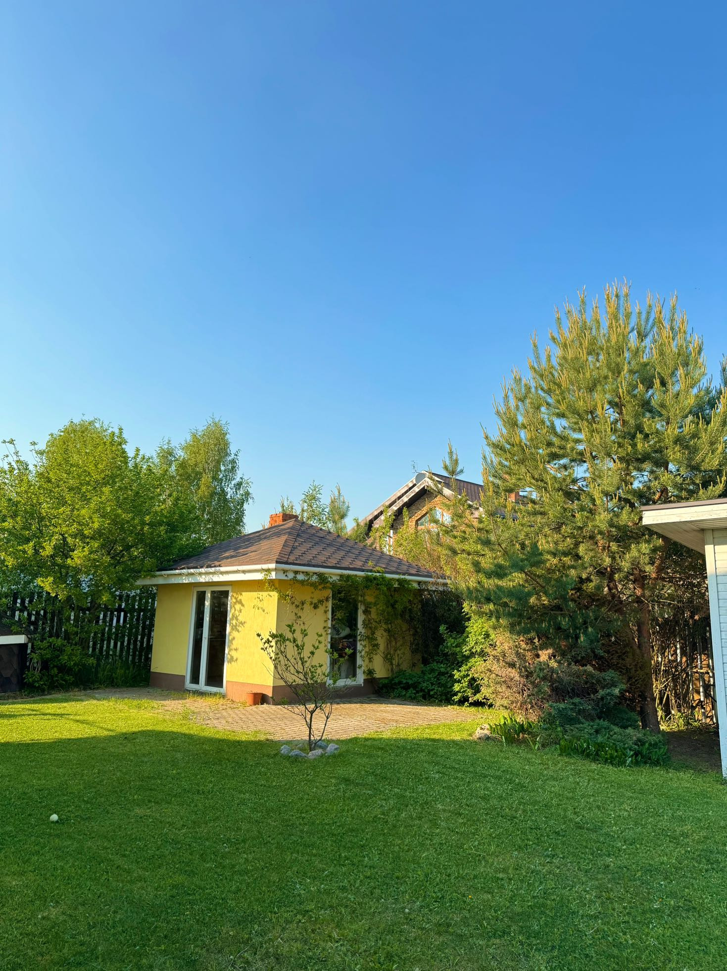 Гараж на 1 машину, беседка с камином, хозпостройка. Детская площадка, терраса и полностью облагороженная территория, имеются кусты малины, смородины, жимолости. Вокруг хорошие соседи.