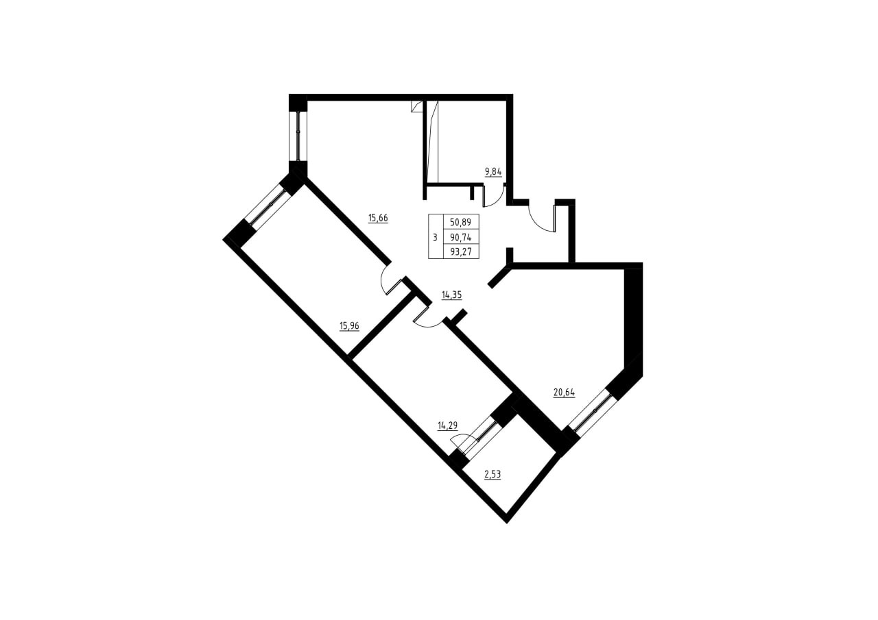 Общая площадь квартиры 93 квадратных метра.