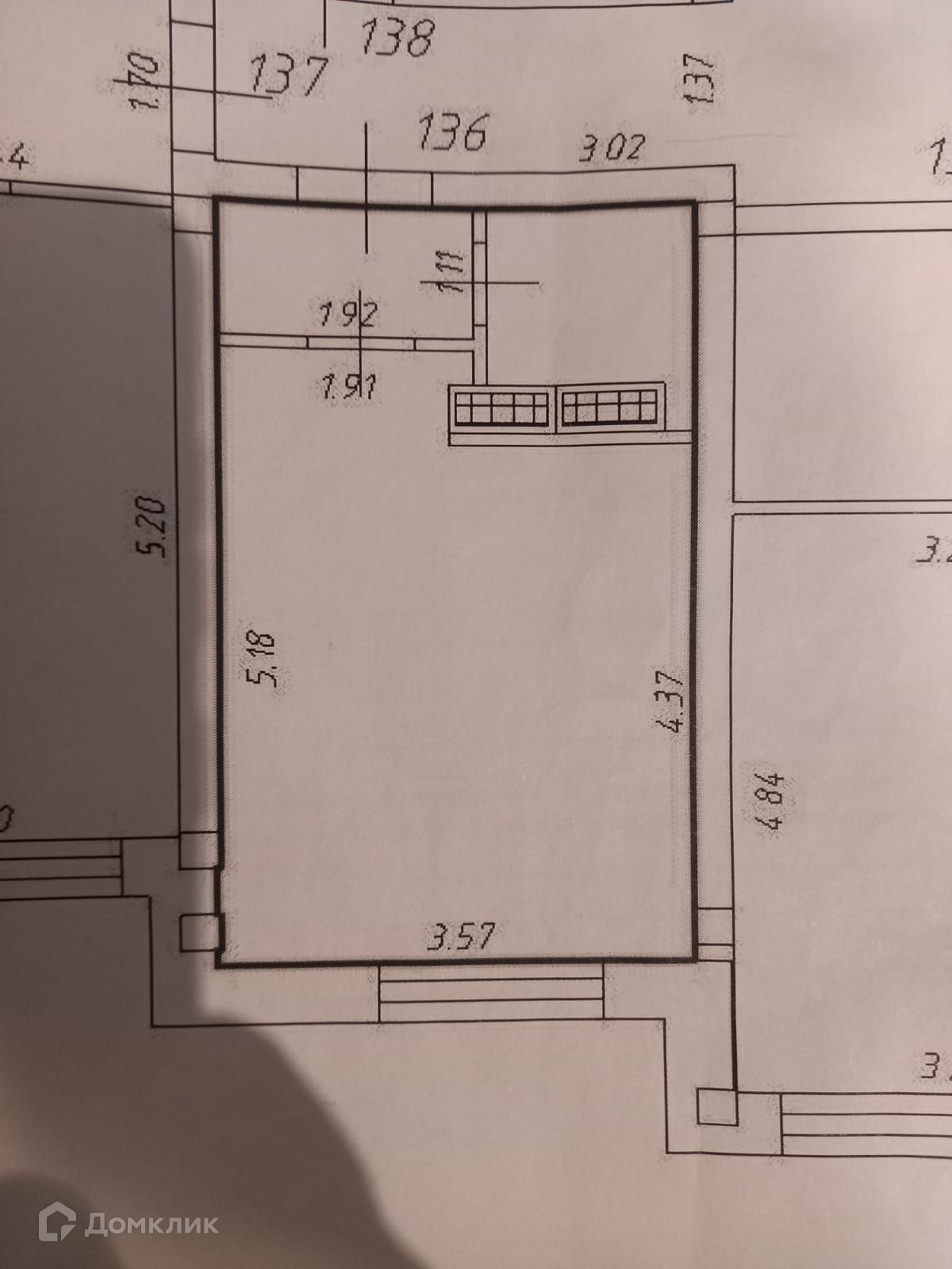 Общая площадь 21.6 м2