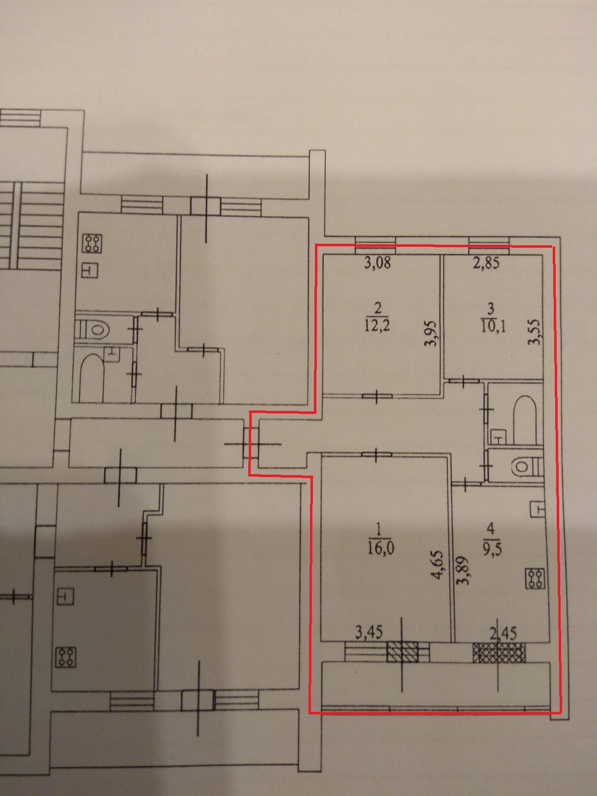 Жилая площадь 38.3 м2