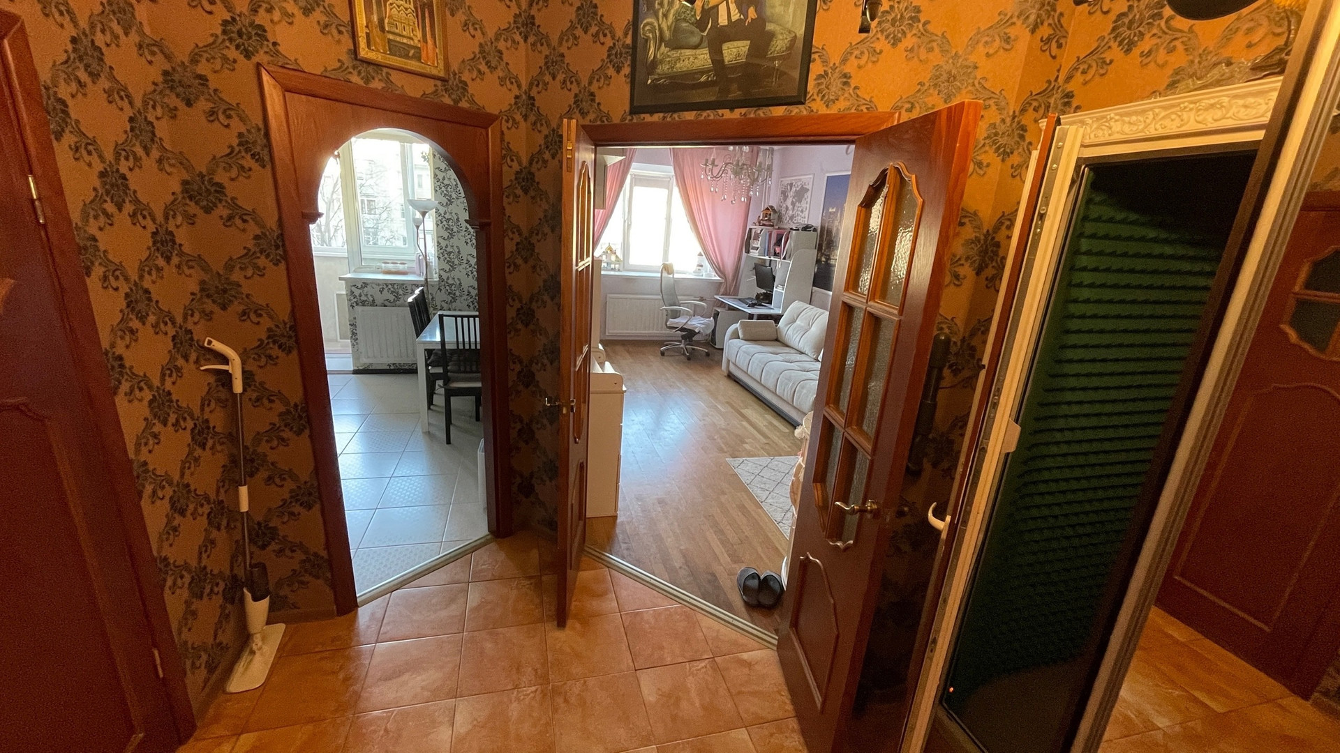 - В квартире есть небольшая студия звукозаписи, которую по желанию можно превратить в гардеробную или кладовку, есть большая антресоль.